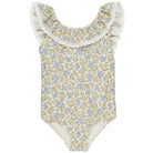 Margaret One Piece by Rylee & Cru. This swimsuit features a darling ruffle collar with fine crochet detail, adding fancy flair to your swimwear. Featuring a bloom print on ivory hue. This dainty floral print encapsulates spring blooms.
