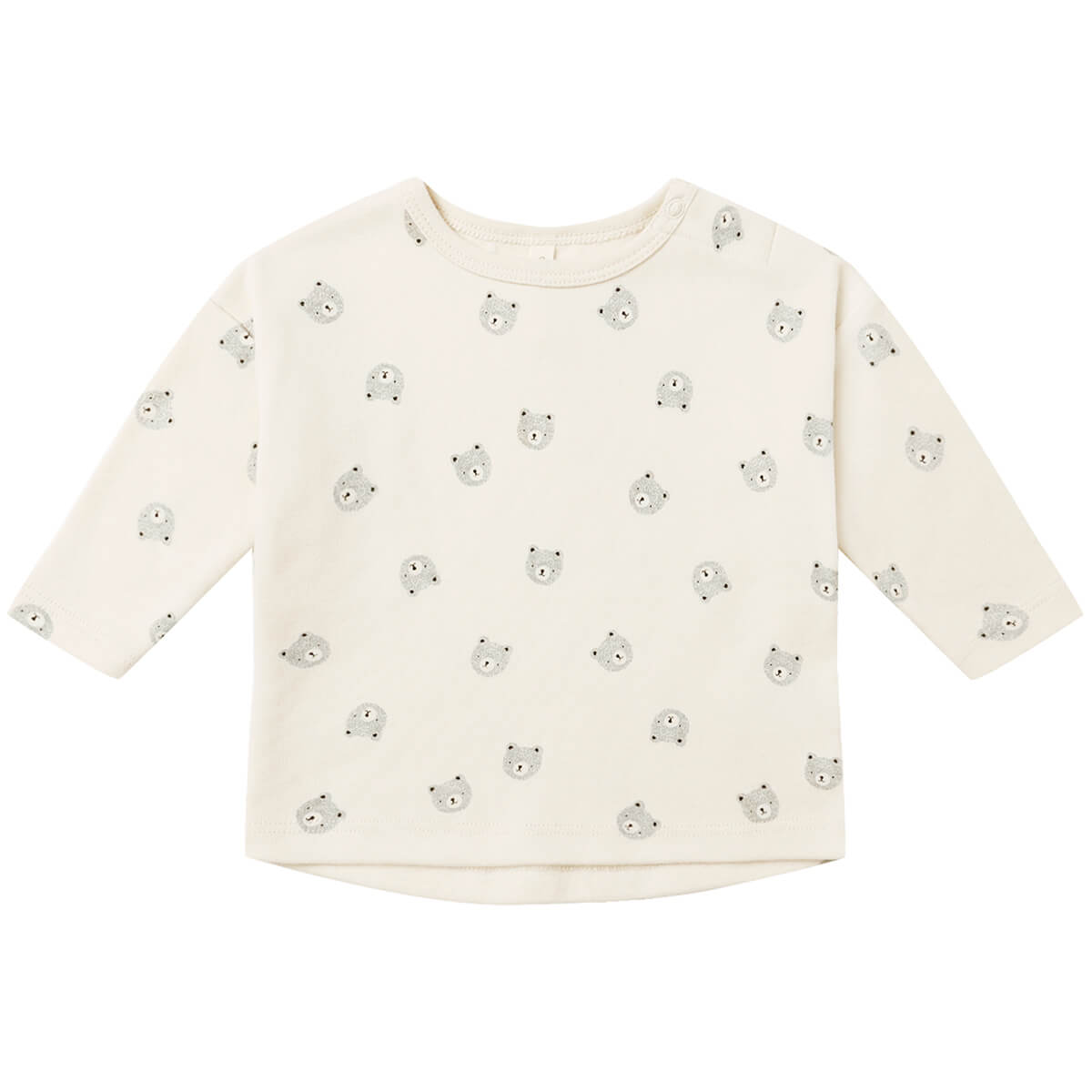 Long Sleeve Tee by Quincy Mae. Long sleeve baby t-shirt crafted from soft organic brushed cotton for all-day comfort. Featuring a shoulder snap on sizes 0-3M - 18-24M for easy wear.