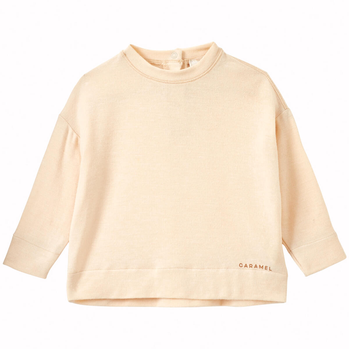Todea T Shirt by Caramel. An everyday staple, Caramel's Todea T-Shirt in classic ecru features a round neckline, long sleeves, dropped shoulders and a loose silhouette, for a comfortable and relaxed fit. The CARAMEL logo accents compliments the subtle style.
