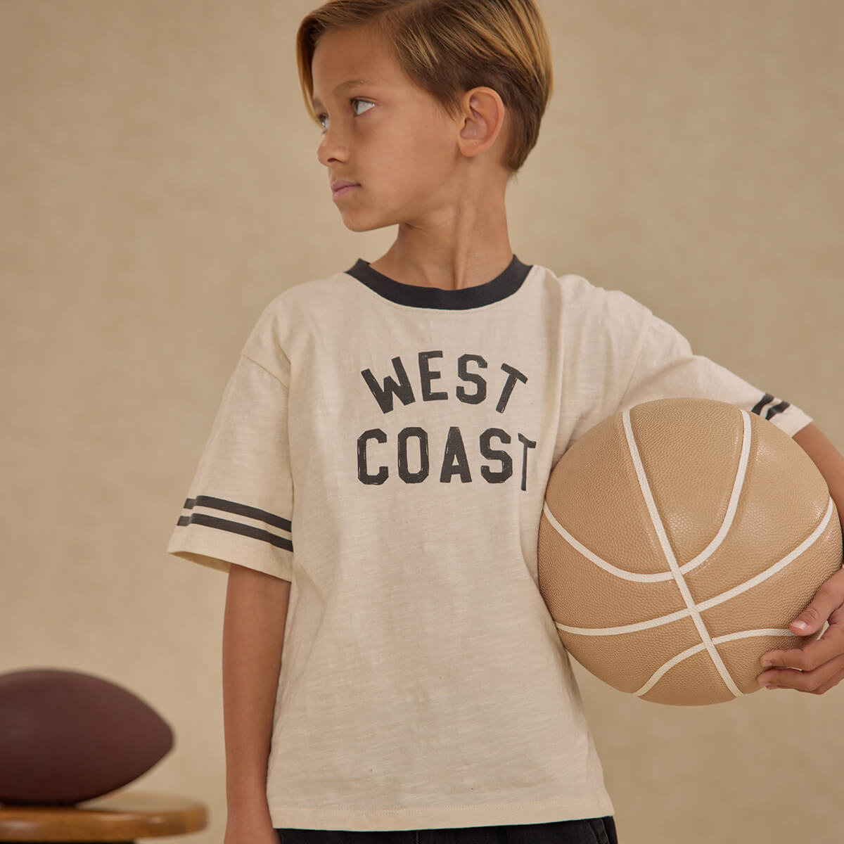 Varsity Tee by Rylee & Cru. A go-to classic, this t-shirt is finished with a contrast neckline and striped sleeve detail.