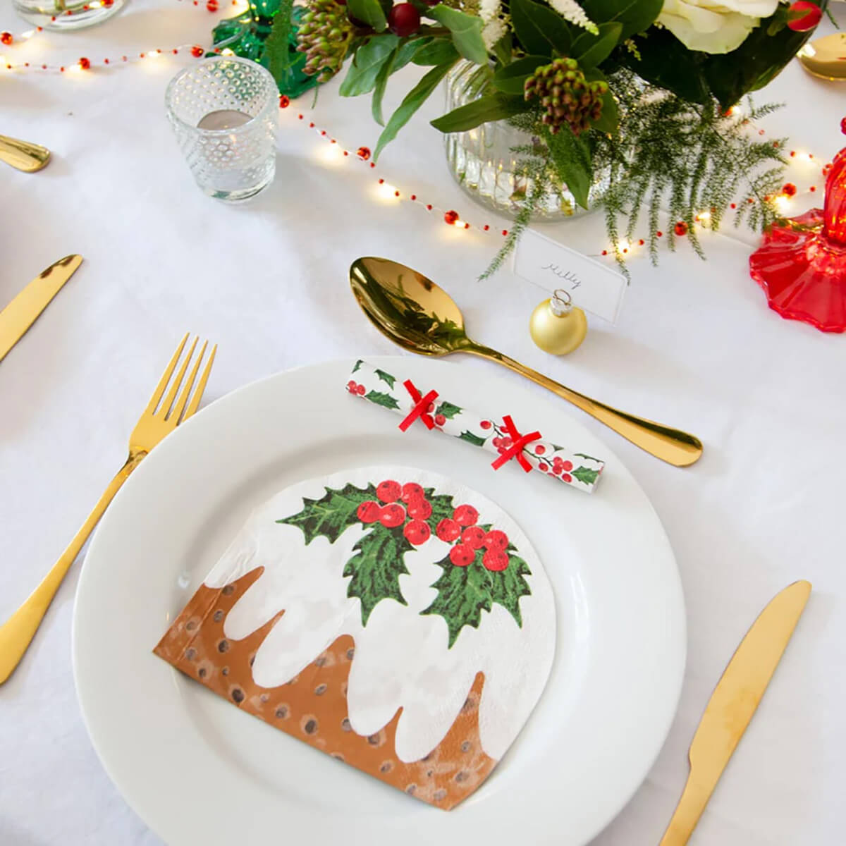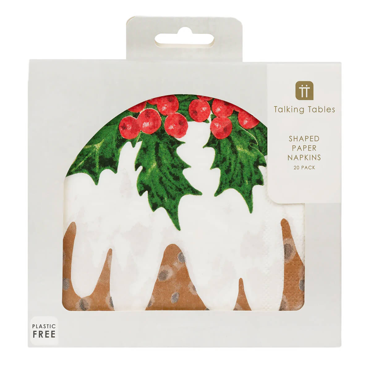 Christmas pudding paper napkins by Talking Tables. The perfect accompaniment to your Christmas table! This pack of 20 quirky napkins is ideal for celebrating with the loved ones in your life during the festive season whether that's Christmas Day, Boxing Day or even Twixmas.