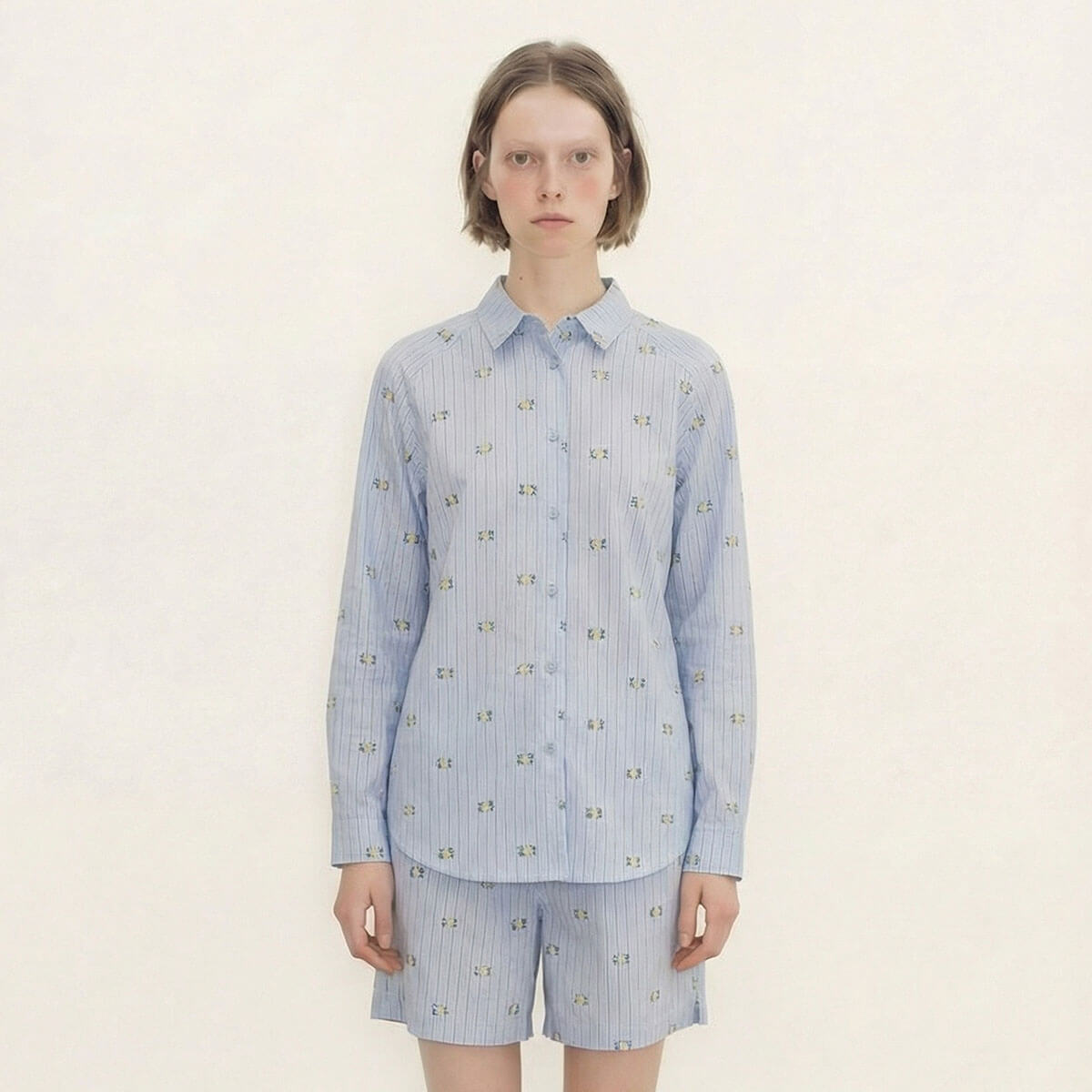 Mini Flowers Shirt in Washed Blue by The Tiny Big Sister