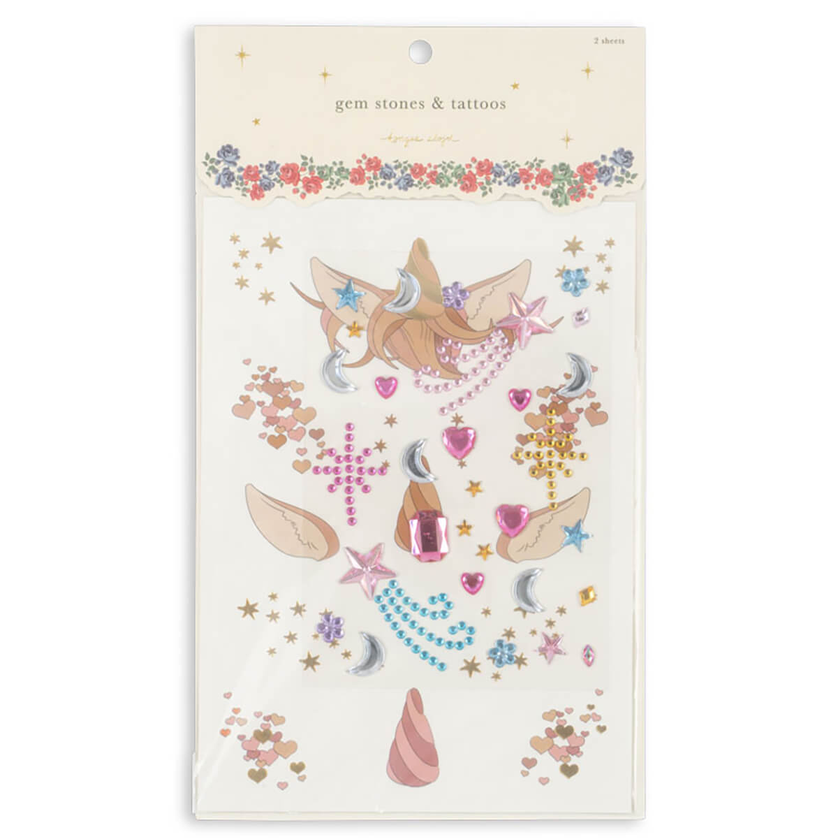 Gem Stones and tattoos by Konges Sløjd. One sheet of tattoos and one sheet of small gem stones for creative play.
