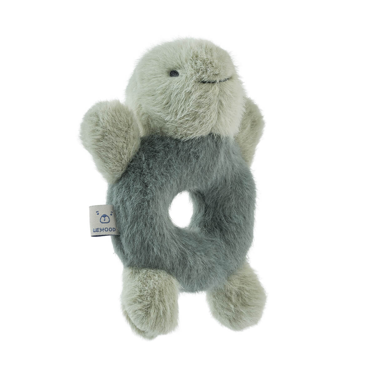 Romain Turtle Rattle by Liewood. This tuertle rattle's soft design makes it the perfect first toy for sensory play. A bell inside the rattle makes a gentle noise. This rattle is suitable for grabbing and grasping and stimulates your baby's senses. Recommended for babies from 2 months, this is the perfect toy for little hands.
