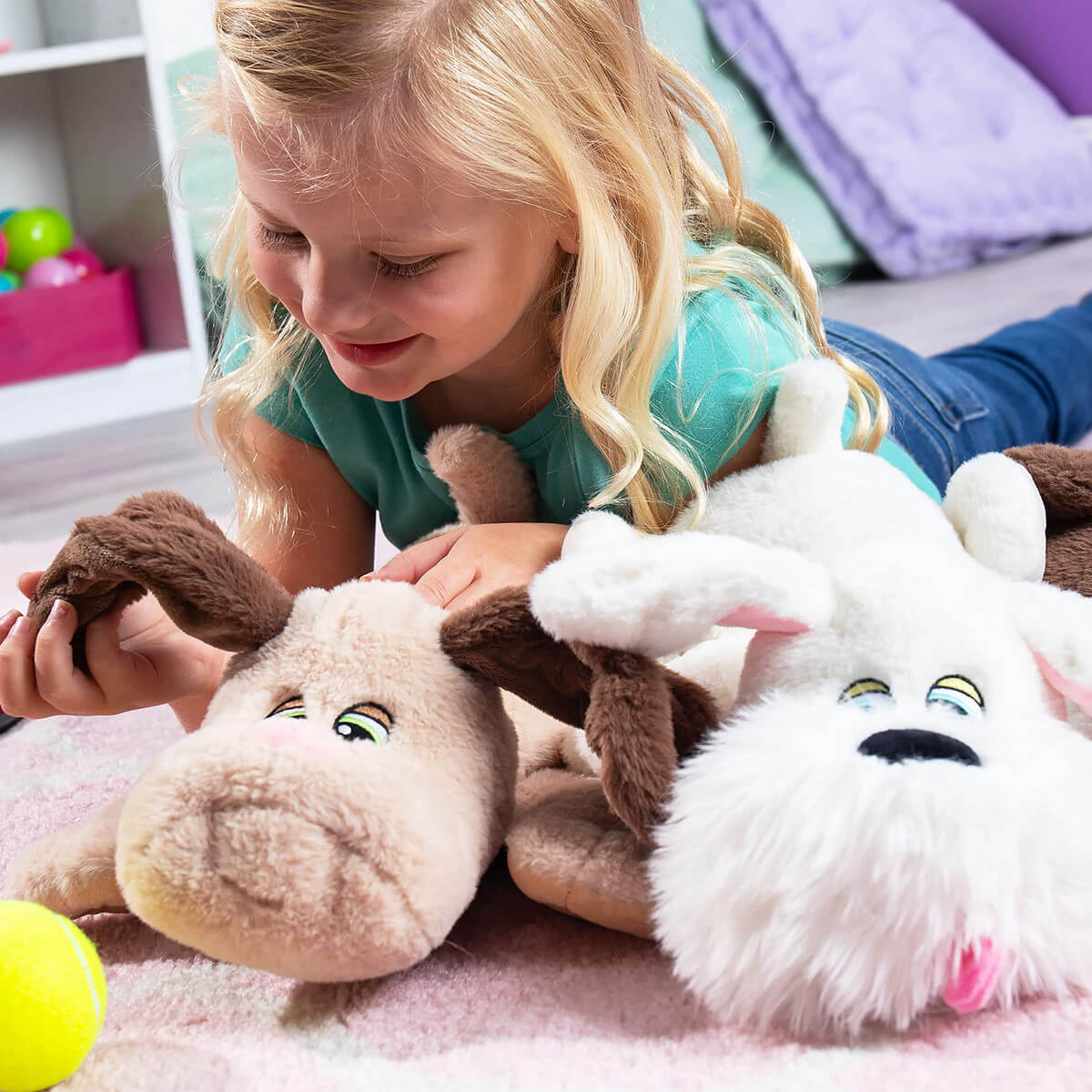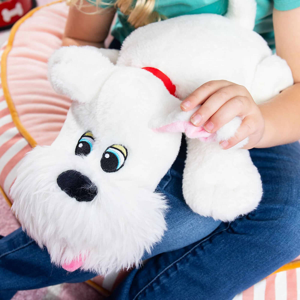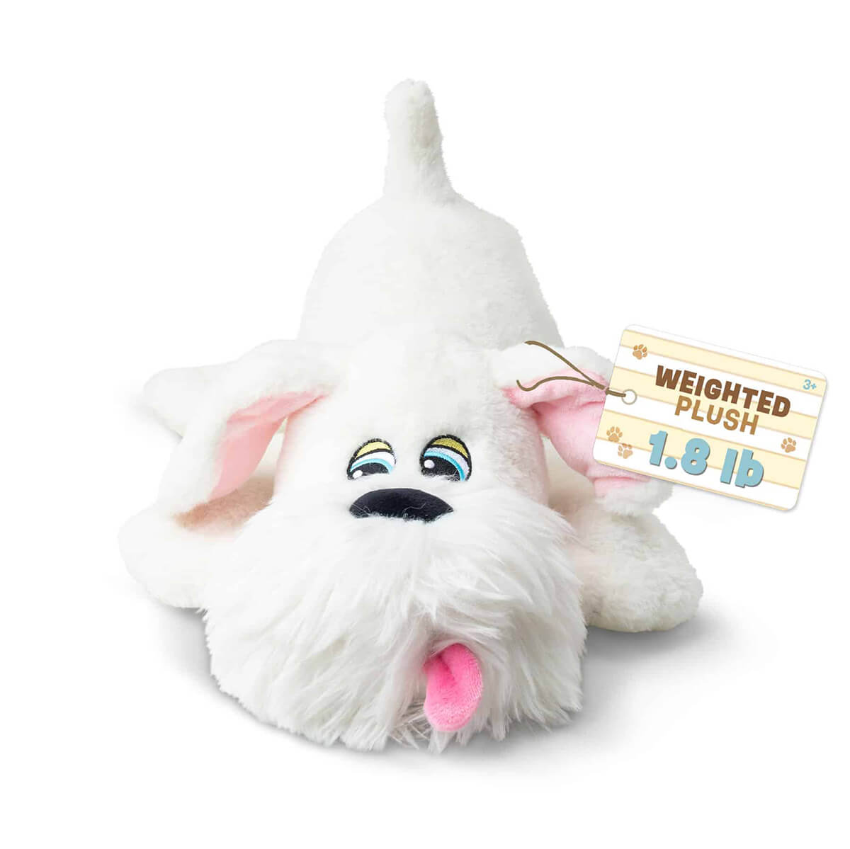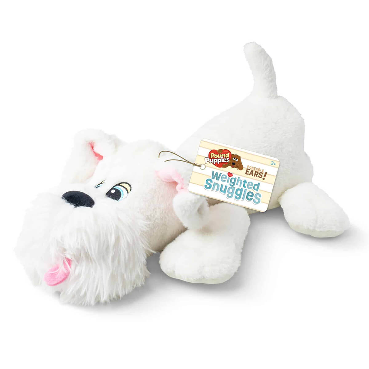 Pound Puppies Weighted by Hasbro. Take a deep breath, relax, and enjoy a cuddle break with Pound Puppies Weighted Snuggles! This white pup with shaggy coat and fluffy beard, brings all the love of the classic Pound Puppies you remember—now with posable ears and added weight for extra comfort and soothing fidget play. For the first time ever, each plush pal is gently weighted at 1.8 pounds, offering calming pressure that can help ease anxiety and promote relaxation through every snuggle. Whether it’s winding down after a long day, settling in for bedtime, or taking a break during quiet time, these soft, huggable puppies are designed to help kids (and grown-ups!) feel safe, soothed, and supported.
