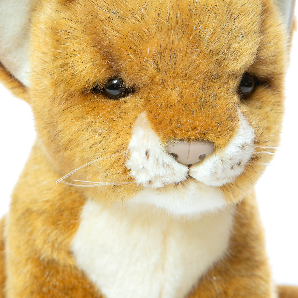 Each Hansa animal is sewn inside out, resulting in the minimisation of seams. This development of an exceptional internal stitching method allows the Hansa artisans to create effects like muscle tone and features unique to each creature. Fabrics are custom designed and exclusively manufactured to Hansa's exacting specifications, and every animal's coat is meticulously hand-cut and trimmed, never stamped out by machine. On average, there are 42 separate pieces required to make each animal. Some animals have as many as 240 different parts! The subtle colouring on the animal is hand painted or airbrushed by specially trained Hansa artisans - every animal is hand finished with loving detail, giving them a lifelike look but still with a sweet and cuddly appeal.