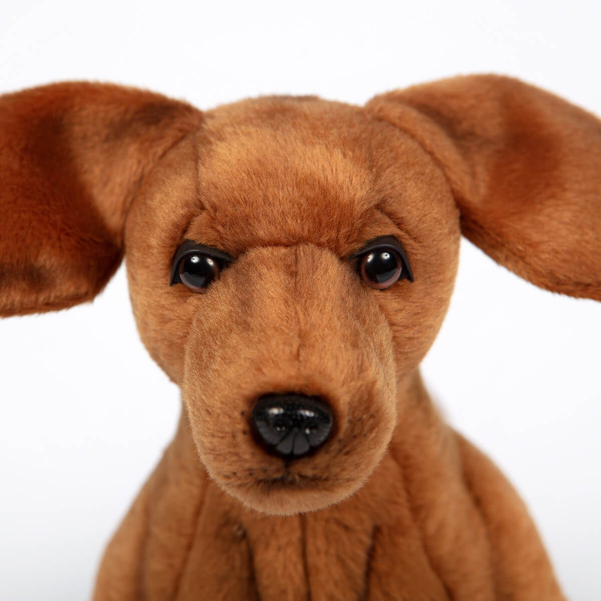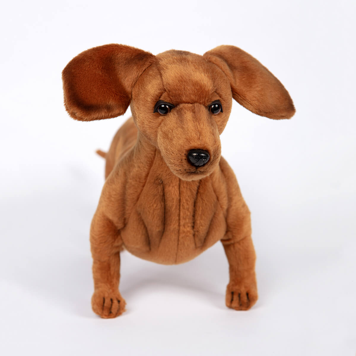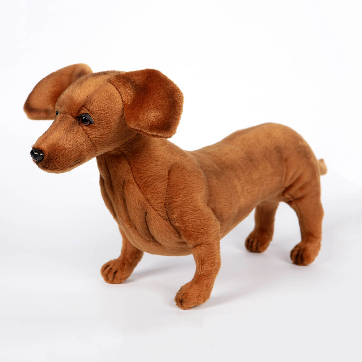 Dachshund Dog Standing plush soft toy by Hansa. Heirloom quality hand crafted plush stuffed animal. This realistic sausage dog is sure to become a child's best friend.