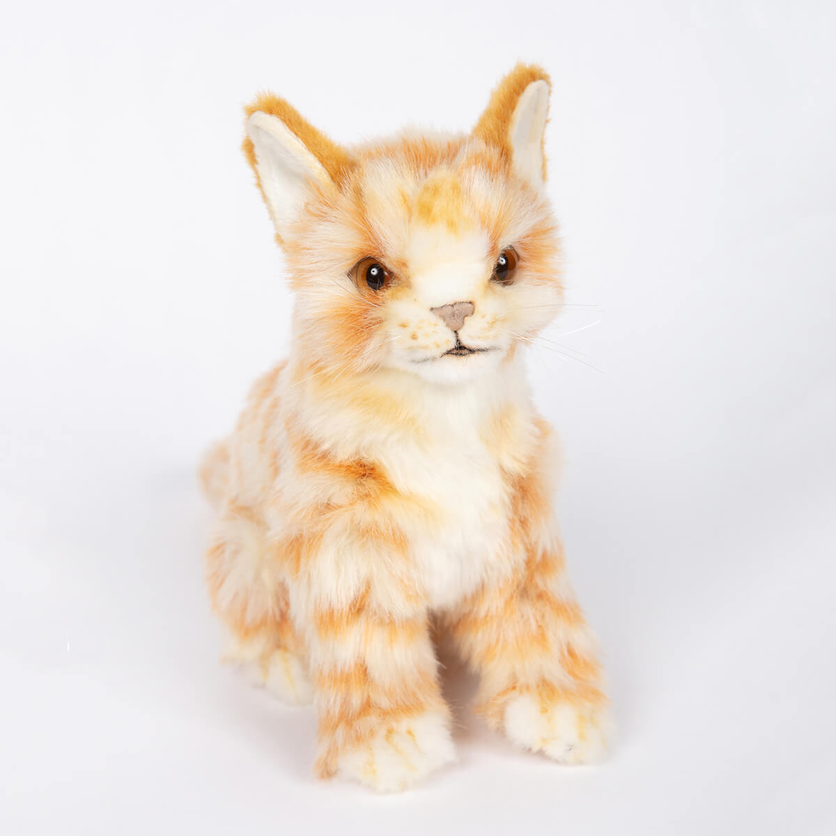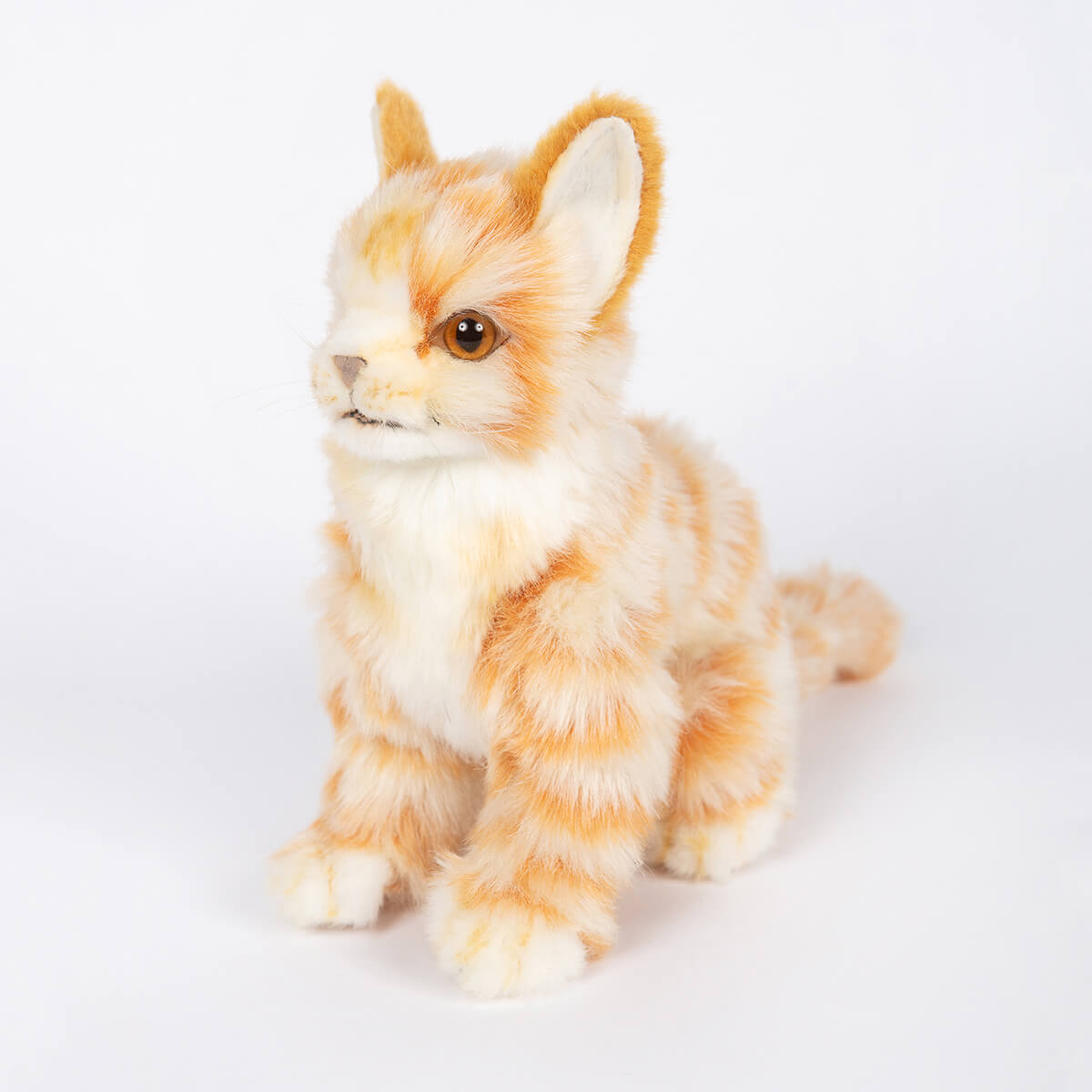 Ginger Jacquard Kitten sitting plush soft toy by Hansa. Heirloom quality hand crafted plush stuffed animal.