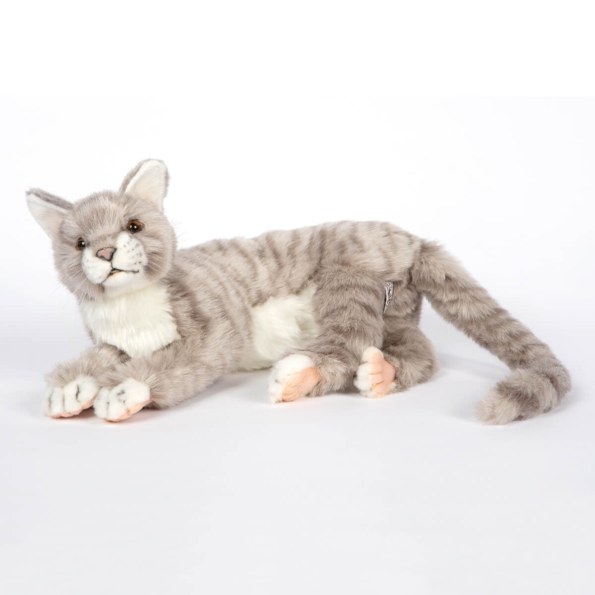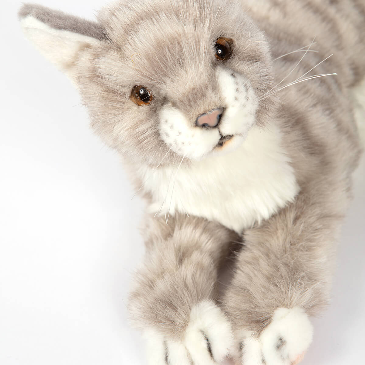 Grey Jacquard Cat Laying plush soft toy by Hansa. Heirloom quality hand crafted plush stuffed animal.