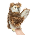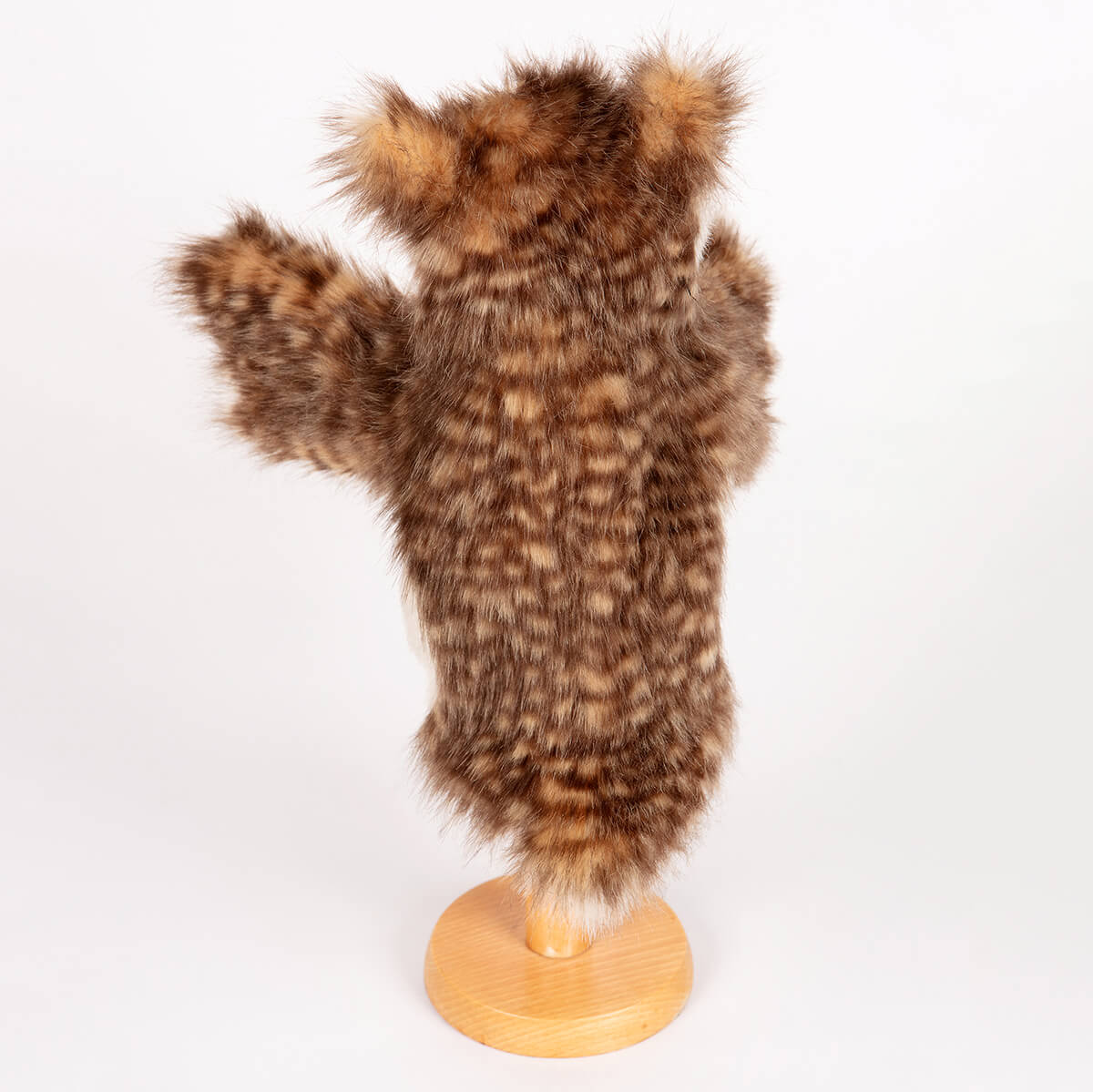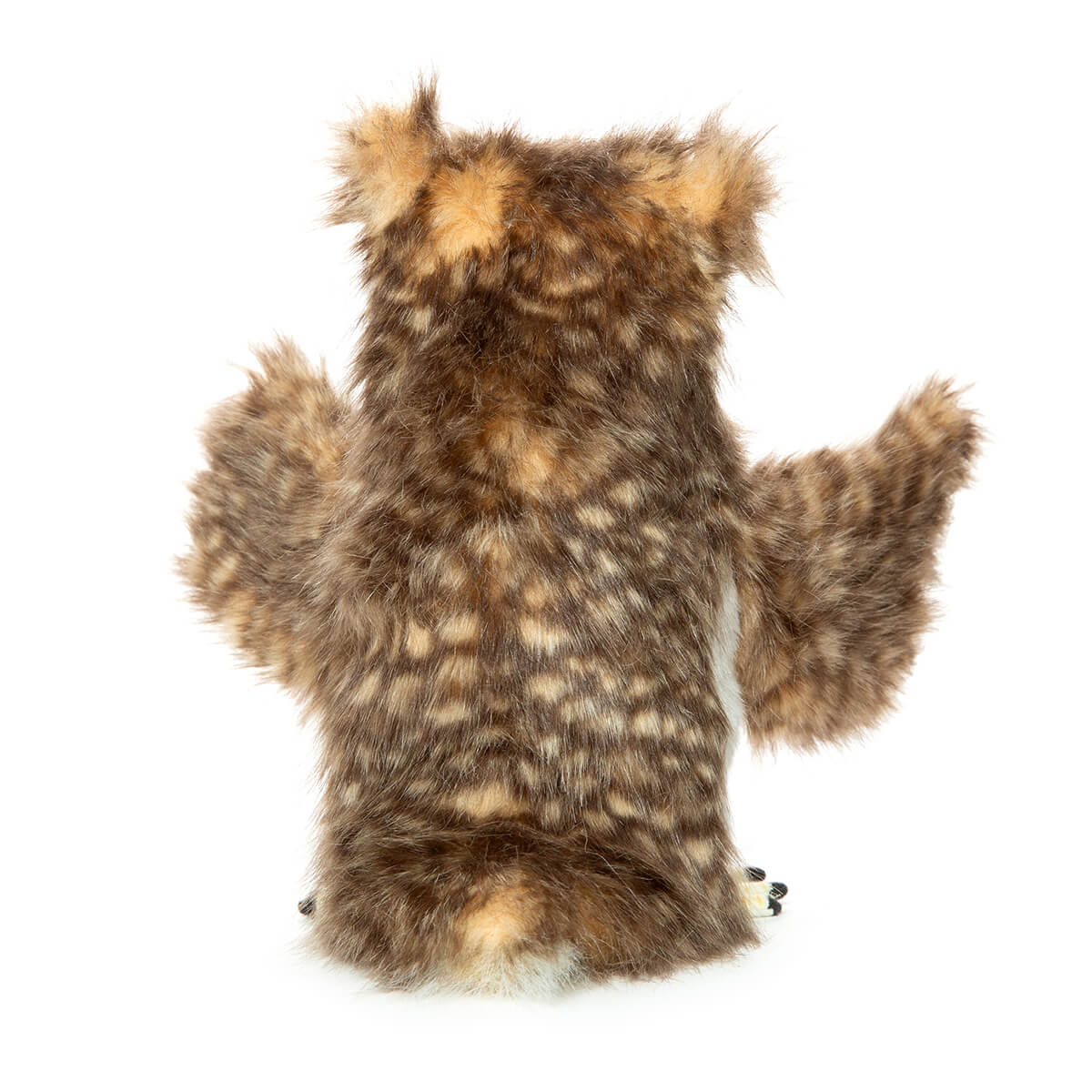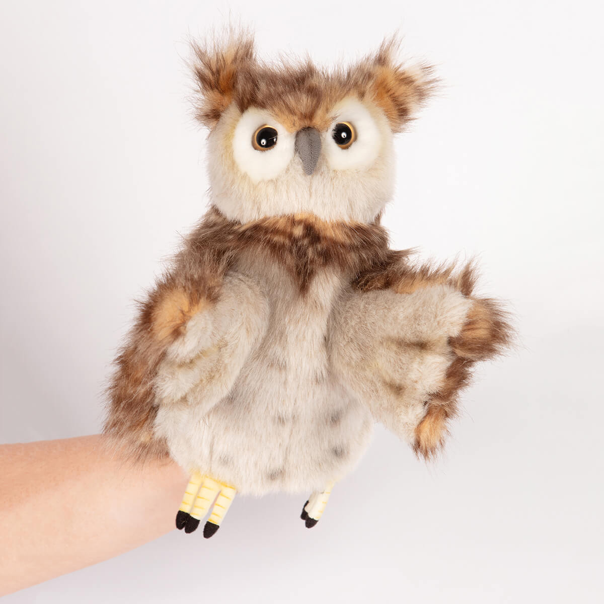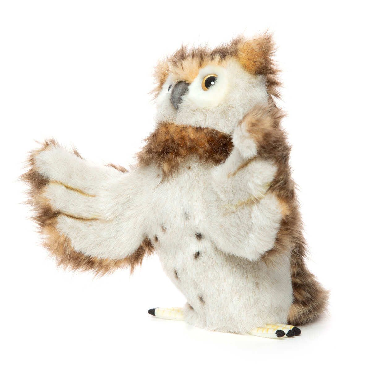 Owl hand puppet by Hansa. Heirloom quality hand crafted plush hand puppet.