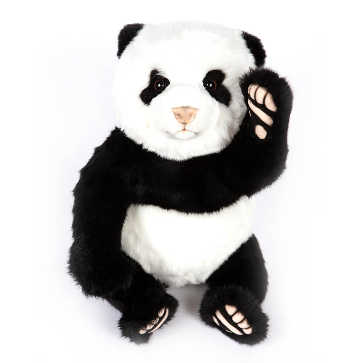 Panda Bear soft toy by Hansa. Heirloom quality hand crafted plush stuffed animal.