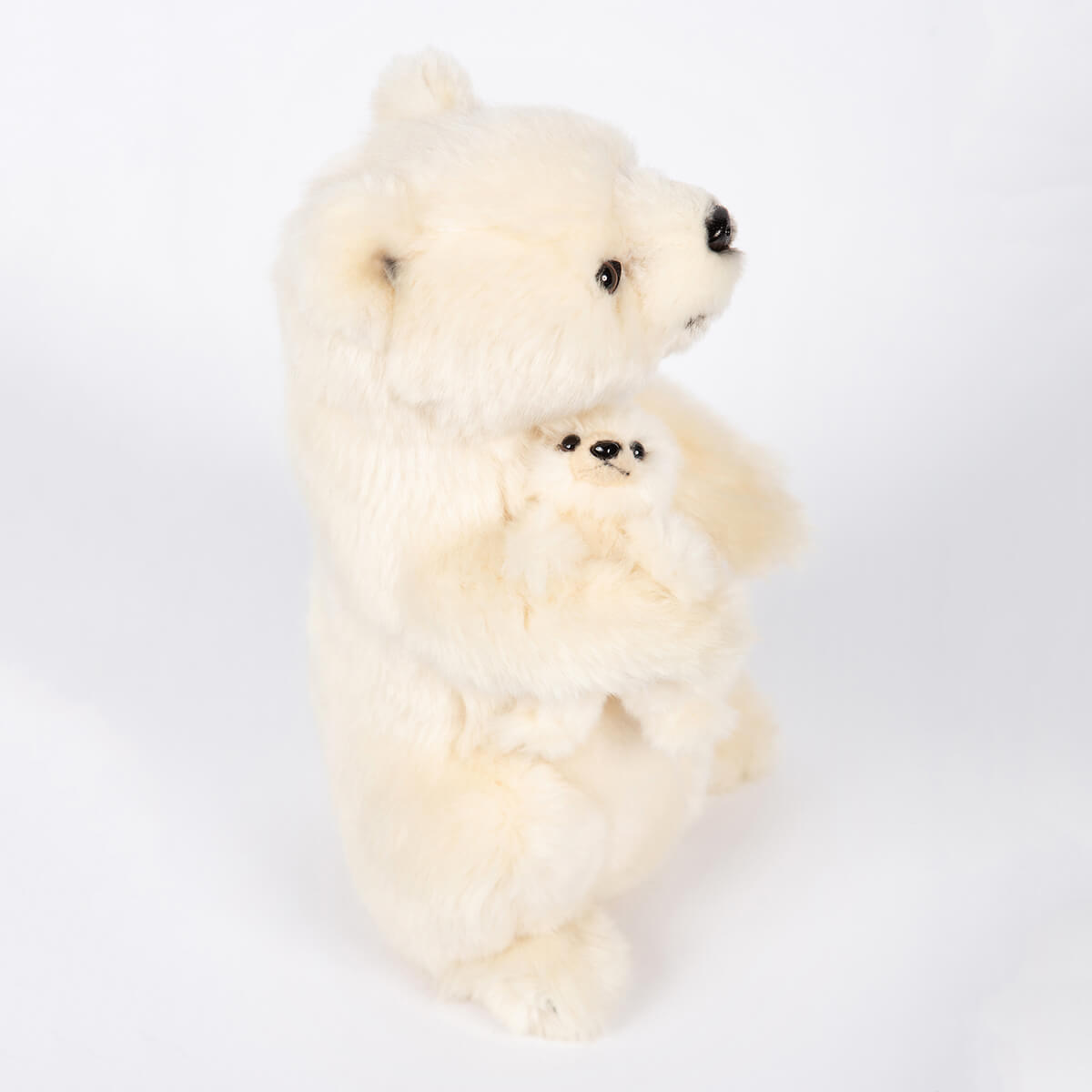 Polar Bear Mama with baby plush soft toy by Hansa. Heirloom quality hand crafted plush stuffed animal.