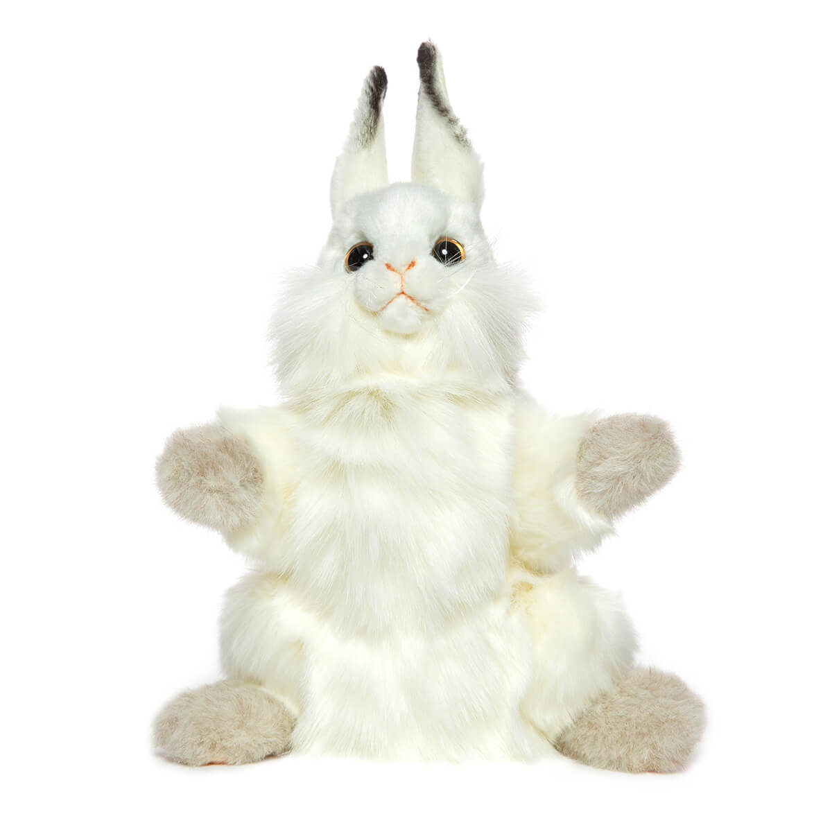 White Rabbit hand puppet by Hansa. Heirloom quality hand crafted plush hand puppet.