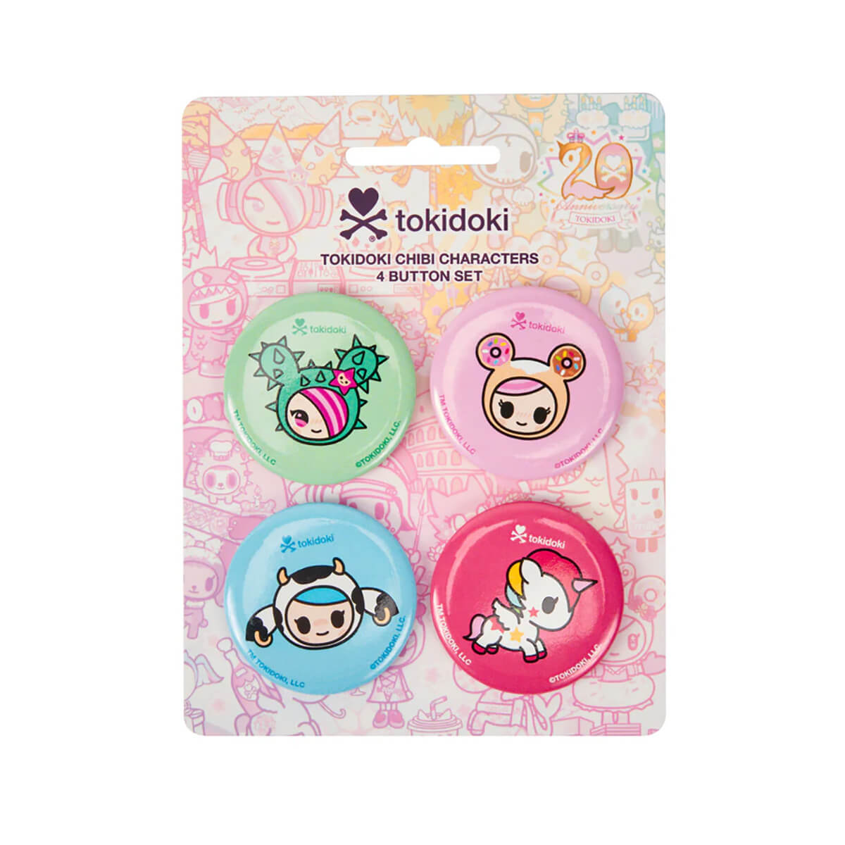 Tokidoki 20th Anniversary Chibi 4 Character Badge Set by Tokidoki. Celebrate tokidoki’s Twentieth Anniversary! Join us as we honor our past and look to the future with our special 20th Anniversary Collection—created with love for every tokidoki fan!