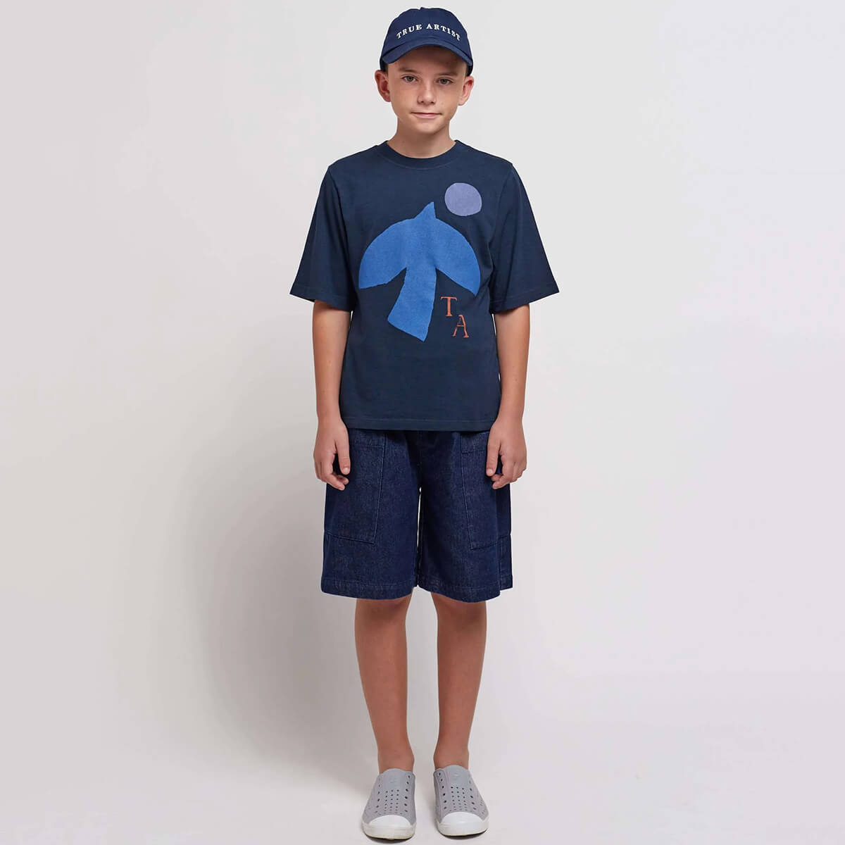 T-Shirt nº05 by True Artist. T-shirt nº05 in Navy Blue is made of 100% organic cotton and features True Artist's iconic textured bird logo printed on the front. It has a round neck, short sleeves and a relaxed fit. Made in Spain.