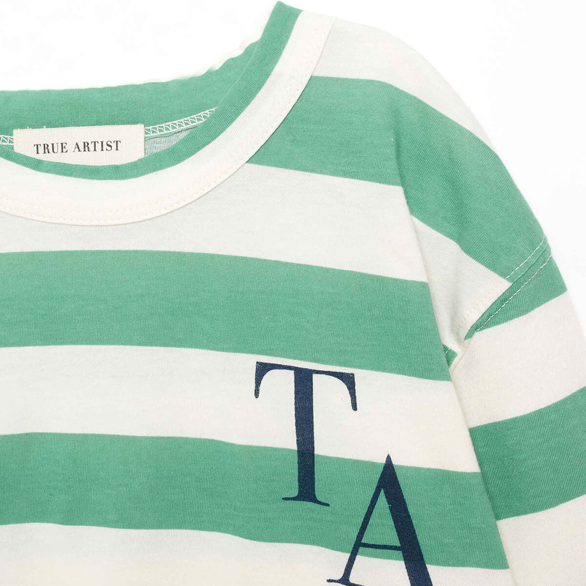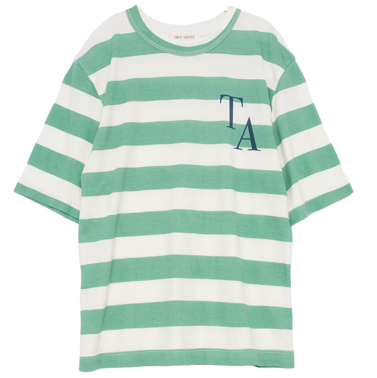 T-shirt by True Artist. A relaxed fit, short sleeve striped t shirt featuring the True Artist logo.