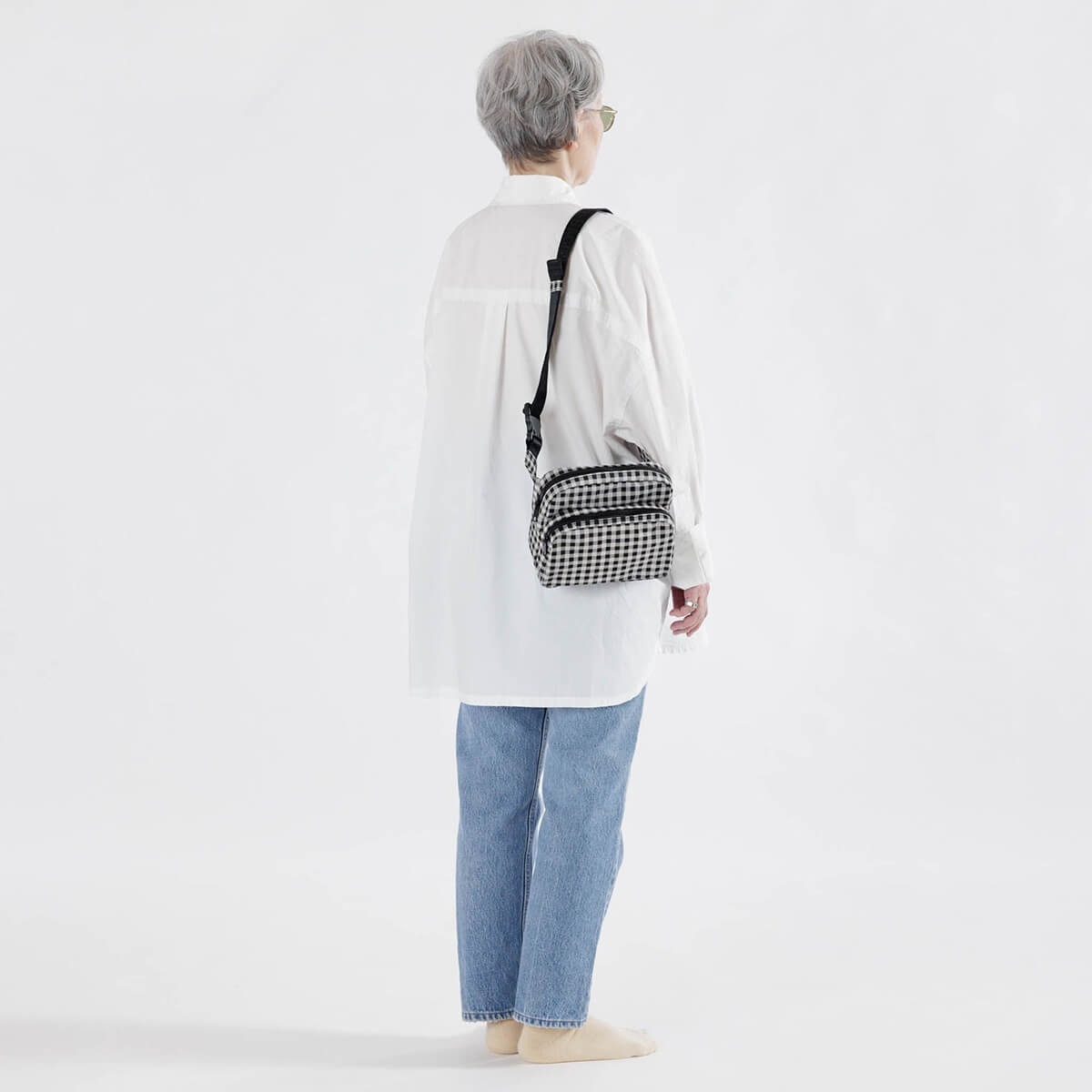 Fanny Pack by Baggu. A hands-free bag for any outing. Surprisingly spacious and made from durable, heavyweight nylon for easy cleaning. Wear across your body, over your shoulder or around your waist. Two main compartments and an interior zip pocket.