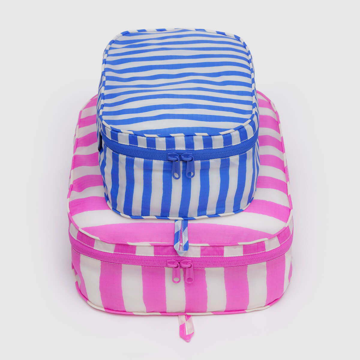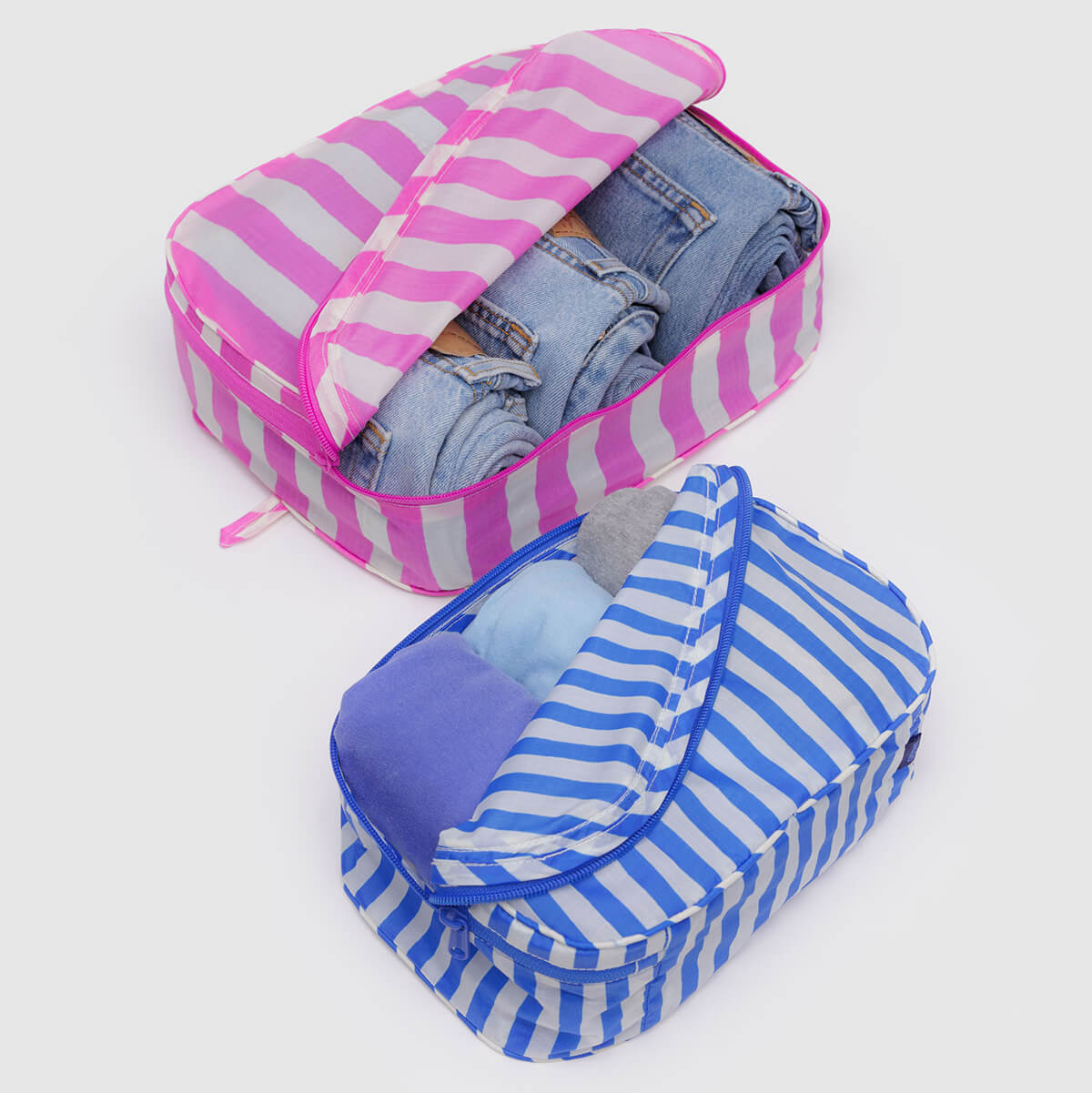Packing Cube Set by Baggu. Travel-ready packing cubes to wrangle the biggest items on your packing list. Perfect for packing, organising your bag, or home tidying. Zip closure. Designed to keep smaller items like socks and t-shirts organised in your travel bag.