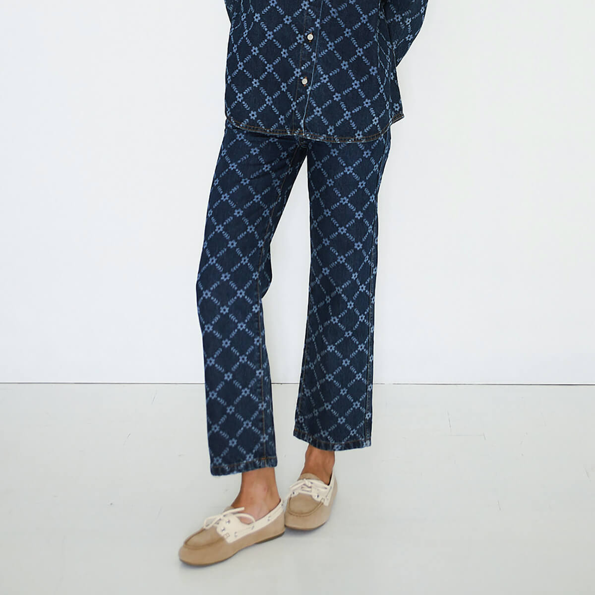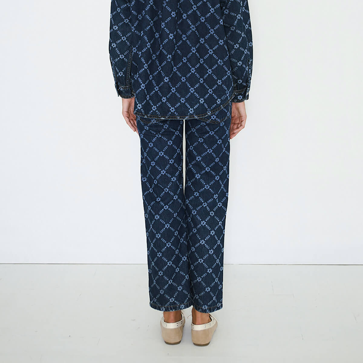 Flowers Grid Maru Denim Trousers in Deep Indigo by The Tiny Big Sister