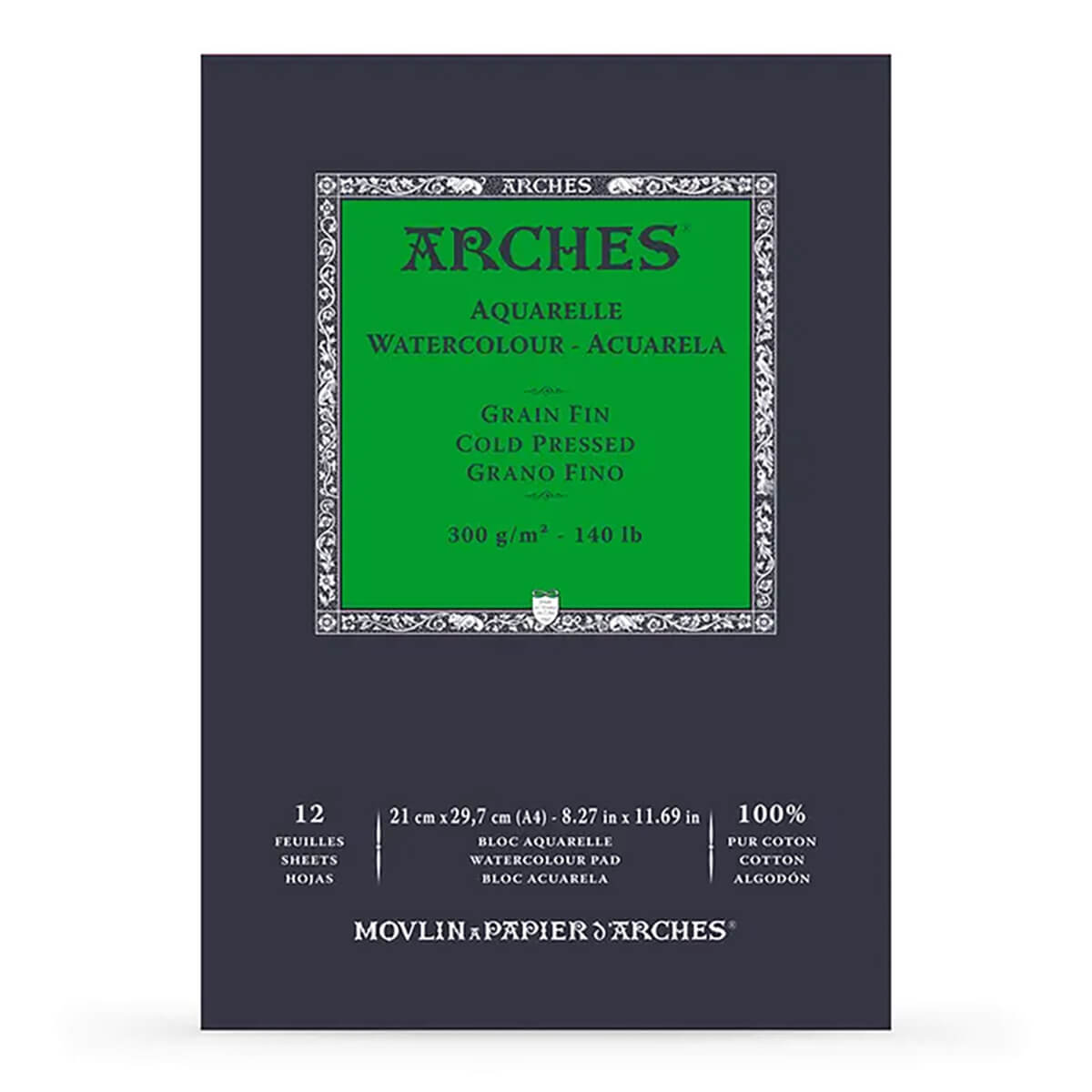 Arches Cold Pressed Watercolour Pad by RK Burt. Cold pressed, otherwise known as Not/Fine Grain watercolour paper is the medium textured watercolour paper which is suitable for all painting styles. Gummed pad with 12 sheets.