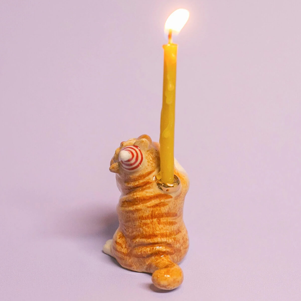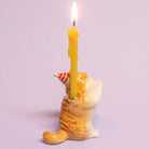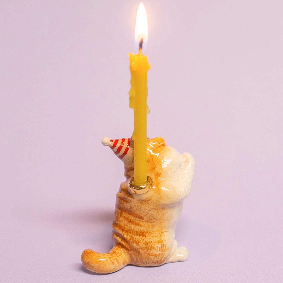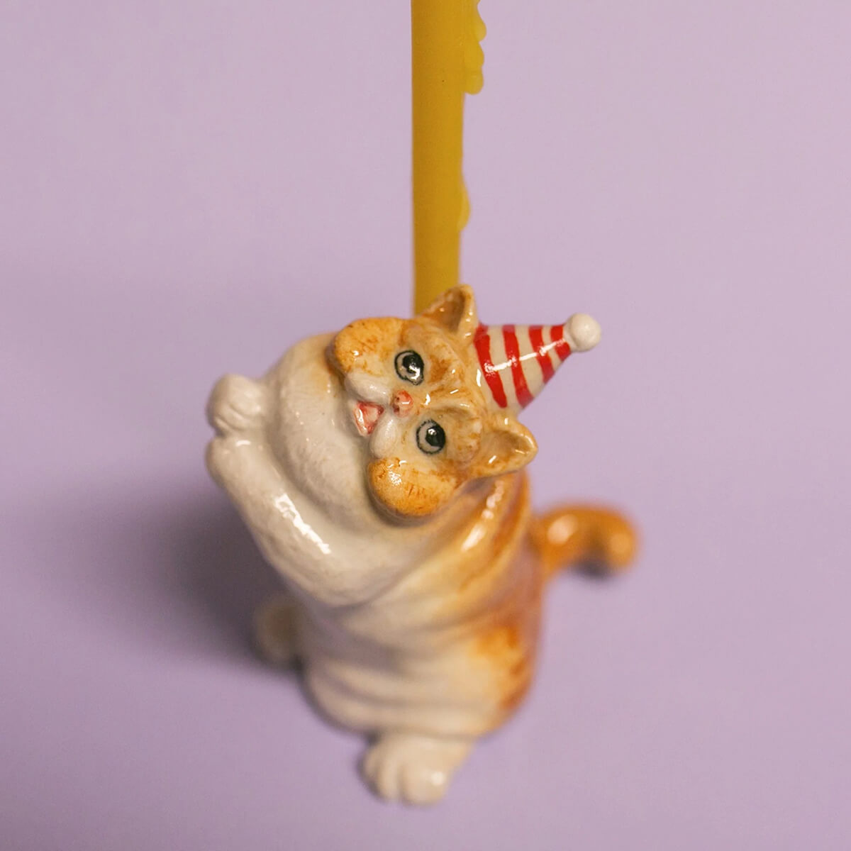 Exotic Shorthair Cat ceramic cake topper by Camp Hollow. This porcelain cake topper adds a whimsical touch to any celebration, featuring an adorable Exotic Shorthair cat wearing a festive striped party hat. Made from high-quality, food-safe materials, it is ideal for birthdays, cat-themed parties, and special occasions. The lifelike design and intricate details make it a delightful keepsake long after the event. Add a unique and fun touch to your cake with this adorable topper. Crafted in fine porcelain and meticulously hand-painted, this beautiful heirloom quality candle holder will celebrate every birthday and occasion for years to come.
