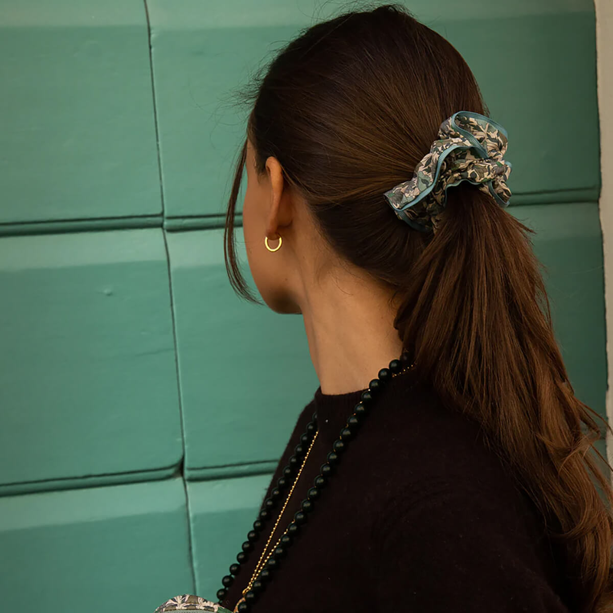 Liberty Hair Scrunchie in Poppy And Daisy Teal by Bon Dep