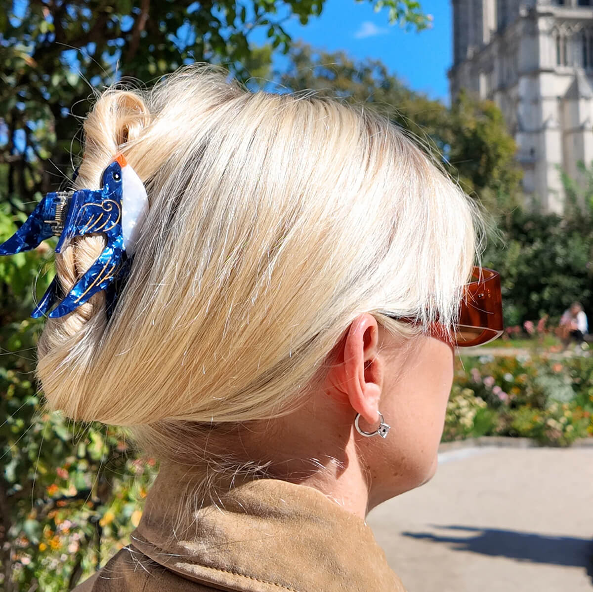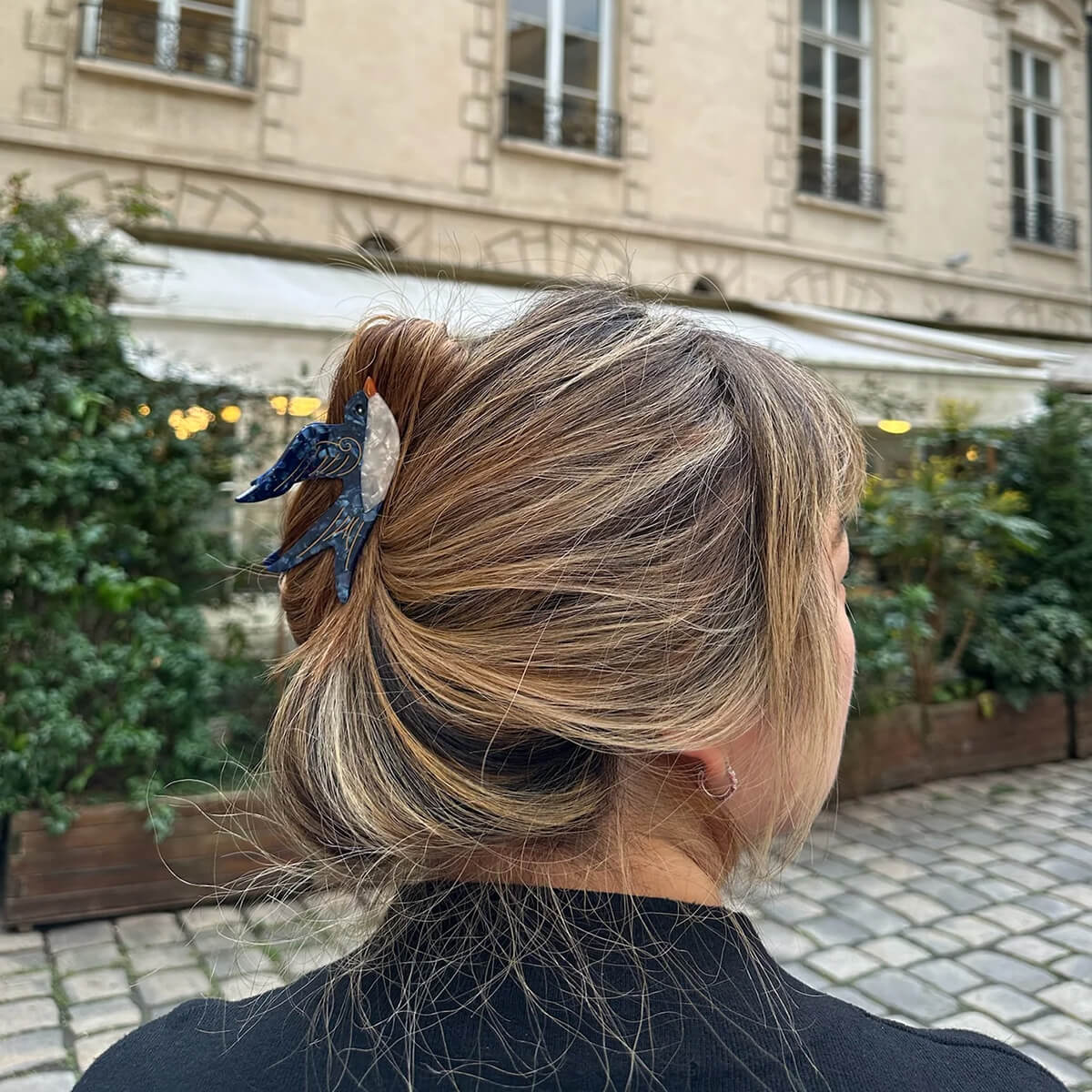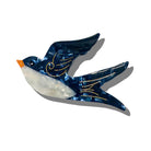 Swallow Hair Claw by Solar Eclipse. Hand-painted by the Solar Eclipse artists, the original swallow hair claw clip is crafted in small batches. It's designed to upgrade your routine and be treasured for years to come. Designed in New York City, this clip is double-sided, for a perfect look from all angles. Handmade with the signature biodegradable acetate made from recycled wood pulp, it effortlessly holds hair for a secure all-day style. Features an extra strong hinge, promoting long-lasting styles for all-day wear.
