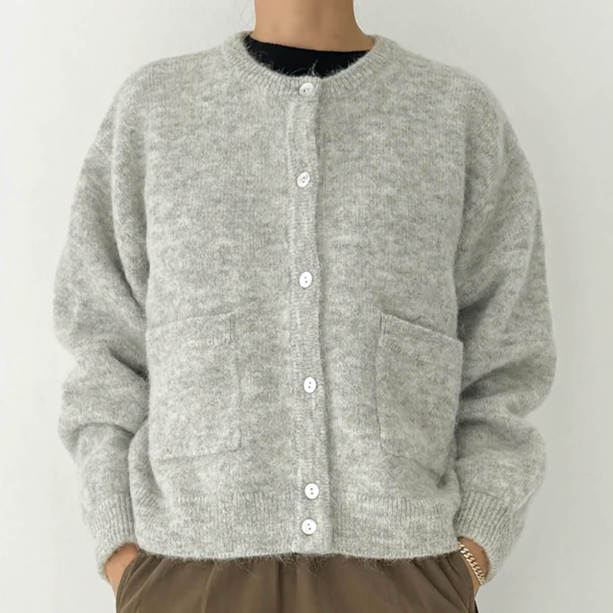 Amelie Alpaca Cardigan by Le Bon Shoppe. The Amélie Alpaca Cardigan is a fresh take on the classic cardigan, crafted from a soft alpaca-wool blend for a cozy yet refined feel. Designed with natural shell buttons and two front pockets, it combines functionality with style. Its slightly oversized silhouette and balloon sleeves provide a relaxed, comfortable fit while maintaining an elegant appearance. Delicately soft and itch-free, it's the perfect layering piece for everyday wear.