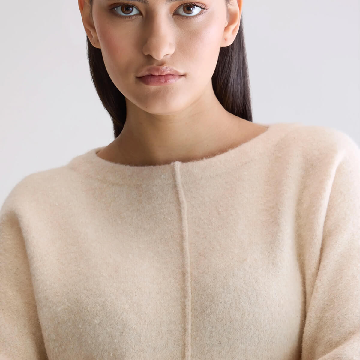 Derny Sweater by Bellerose. Classic off white wool-blend jumper with a visible seam down the front and back.