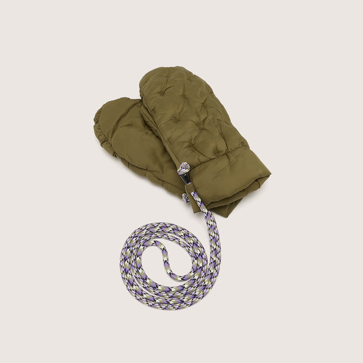 Hanimo Gloves by Bellerose. Warm quilted mittens on a handy cord.