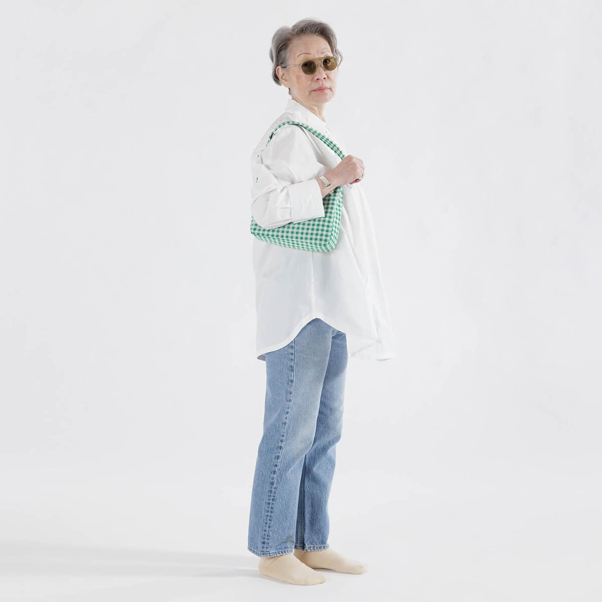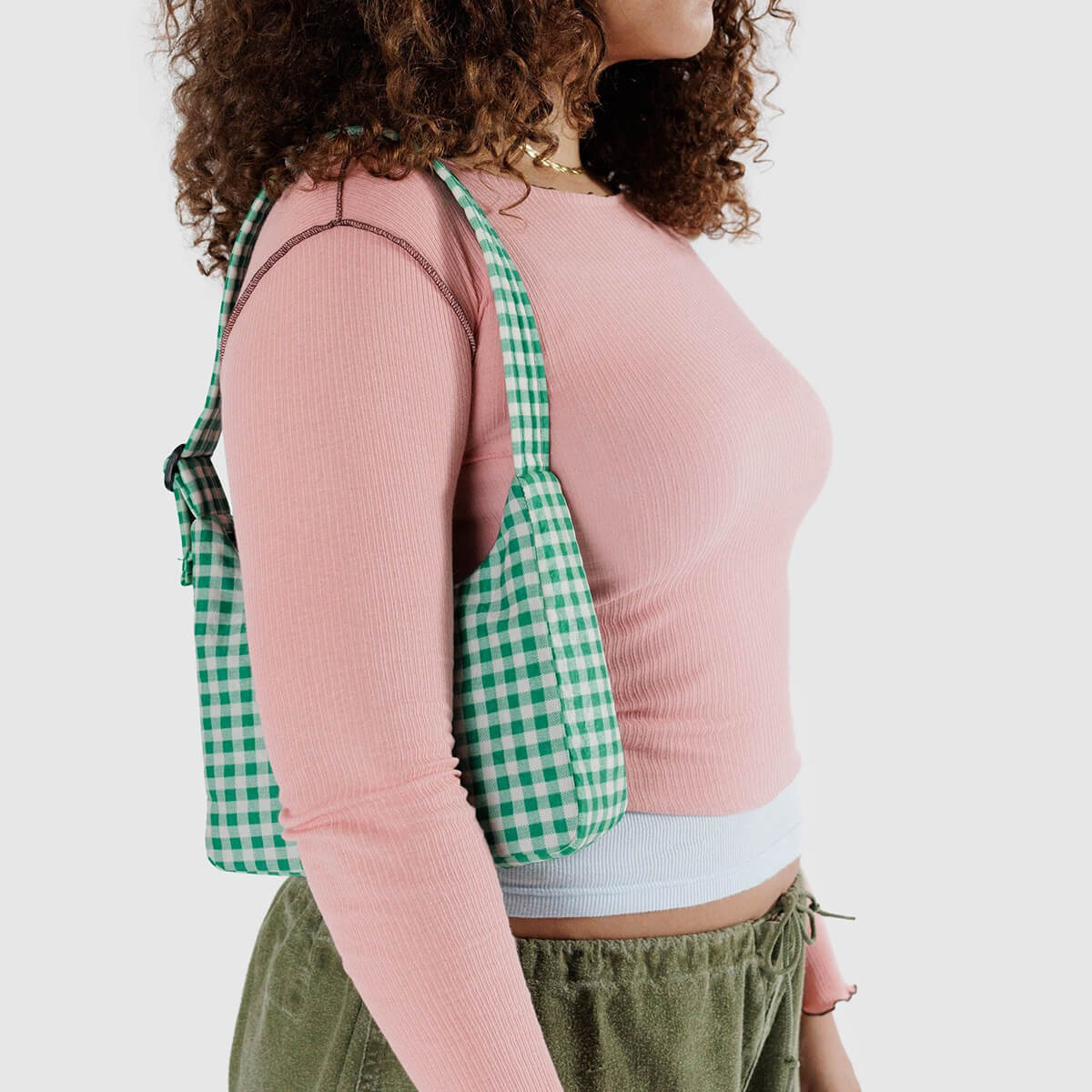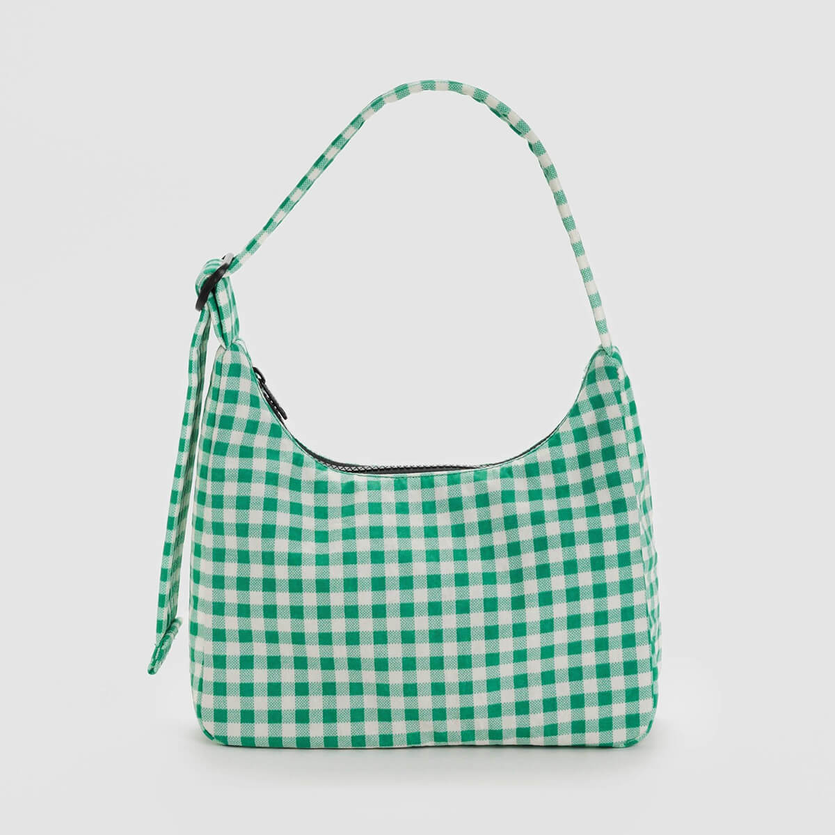 Mini Nylon Shoulder Bag in Green Gingham by Baggu