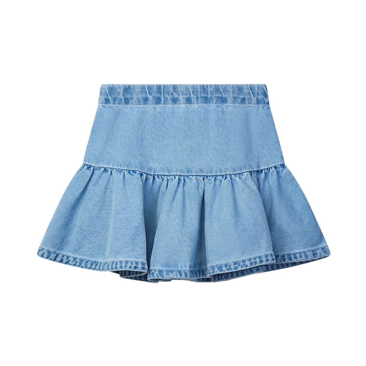 Cloud Skirt by Wynken. This light and playful denim skirt is made for sunny days—crafted from soft, breathable denim that feels gentle on the skin. The frill detail at the hem adds a sweet touch. Designed with comfort and ease with an adjustable waistband to keep up with growing kids! An everyday favourite for sunshine, play, and everything in between.