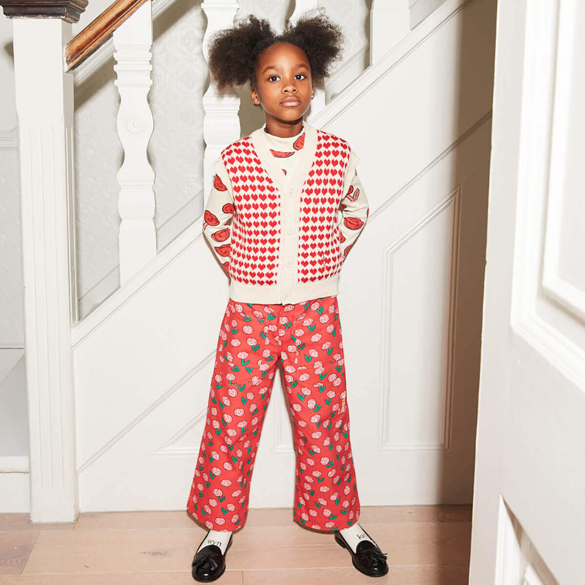 Kons Jean by Wynken. These red cotton canvas, high waisted jeans are full of attitude and fun, with an all-over floral print that brings a burst of Wynken energy. The straight-leg cut has a slightly wider fit—for all-day comfort! With handy back pockets for stashing small treasures, they’re made for playful days and big adventures.