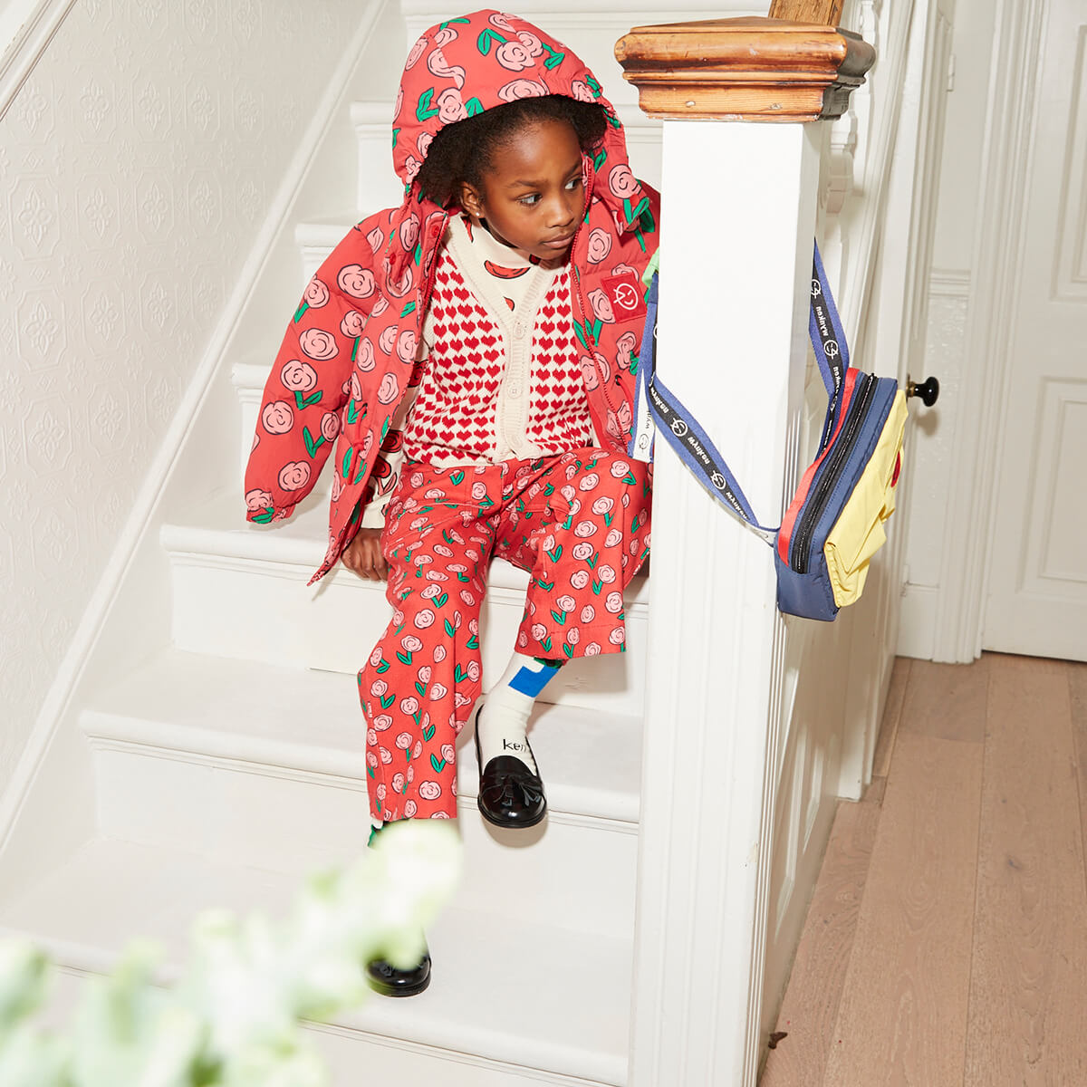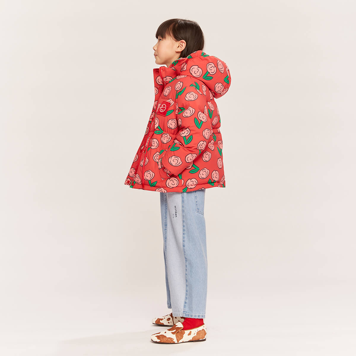 Kukka Down Jacket by Wynken. Made for chilly days and outdoor adventures, this coat is cosy and full of character. Featuring an adorable all-over floral print and the signature Wynken logo, it adds a playful touch to every outfit. Filled with 90% duck down and 10% feather for breathable warmth, it’s designed with a soft lining, adjustable drawstring waist for a perfect fit, and deep pockets for small chilly hands. This garment is treated with a shower-proof coating to keep you warm and dry.