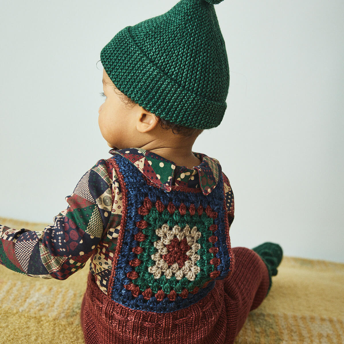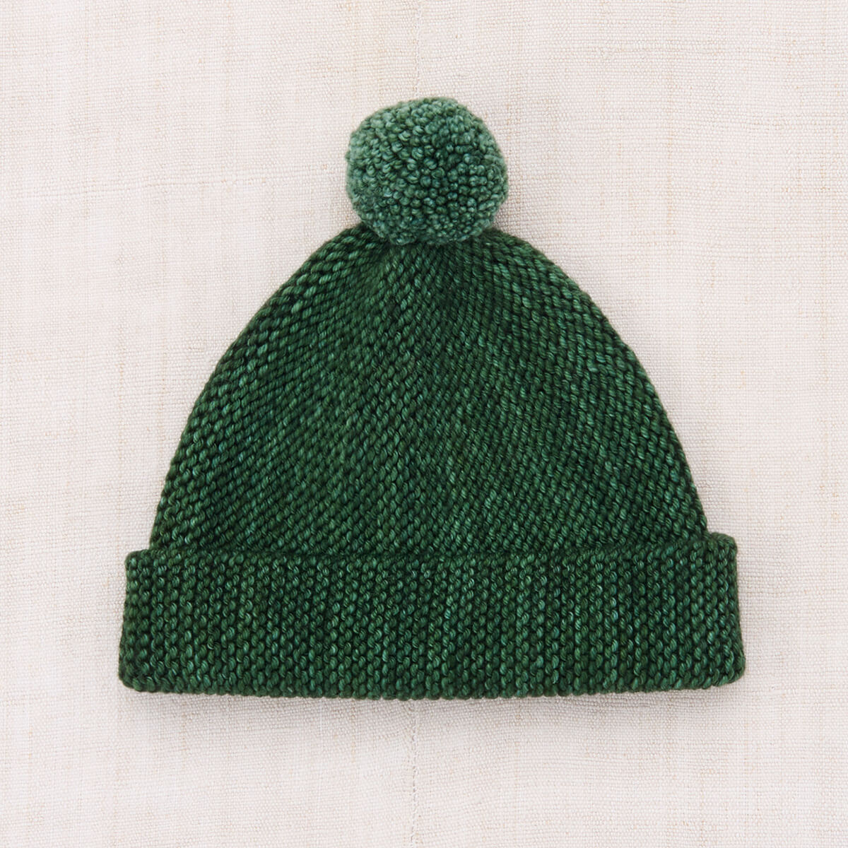 Baby Garter Hat by Misha & Puff. A classic hat in a Merino wool knit, with an adjustable brim and a pom-pom top. The brim comes unrolled, wear it rolled, cuffed, or loose.