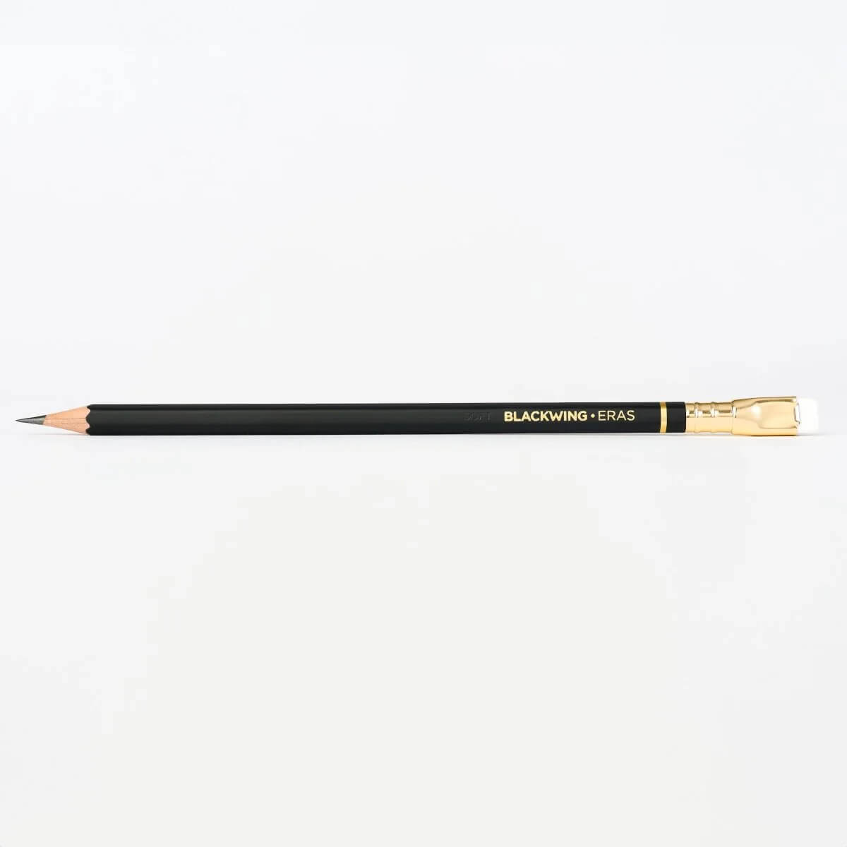 Blackwing Eras 2025 Edition Pencil (Box of 12) by Blackwing. This Eras pencil sports a gold-banded design inspired by the pencil that kicked off the Blackwing revival in 2010. Each box includes 12 special edition pencils that feature a matte black barrel, gold stripe, gold ferrule, white eraser, and our soft graphite. This special edition pencil is the sixth entry in our Blackwing Eras series - honoring Blackwing's heritage with designs inspired by the Blackwing 602's unique history.