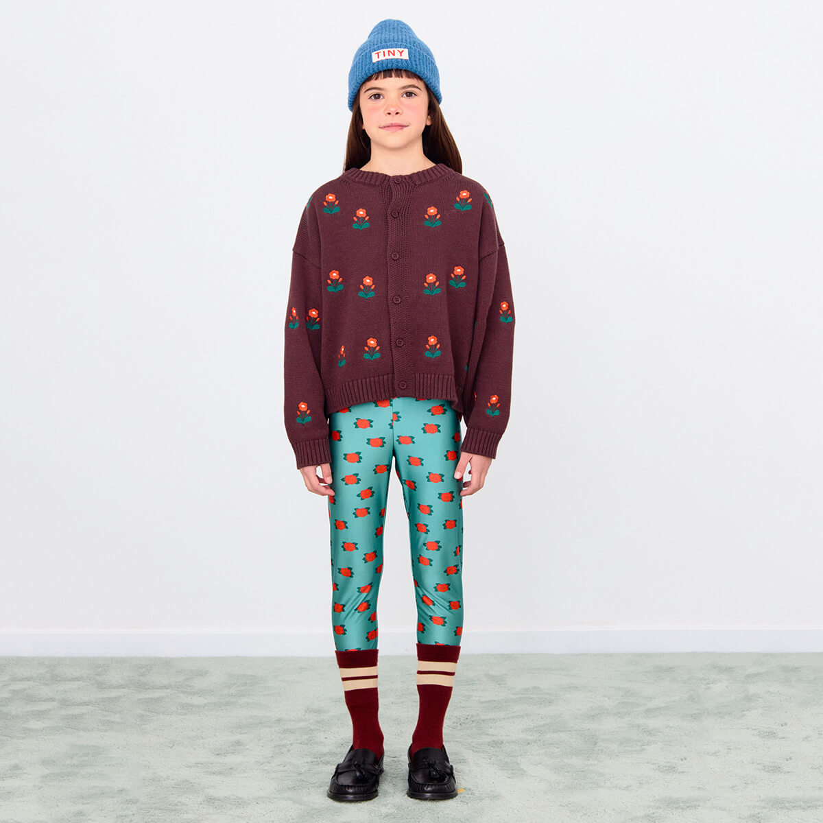 Camelias Shiny Pant by Tinycottons. The Camelias all over print leggings are crafted from shiny, stretchy fabric, perfect for keeping up with every twist and leap. Ankle-length with an elastic waistband, they’re a garment that ensures comfort and freedom of movement.