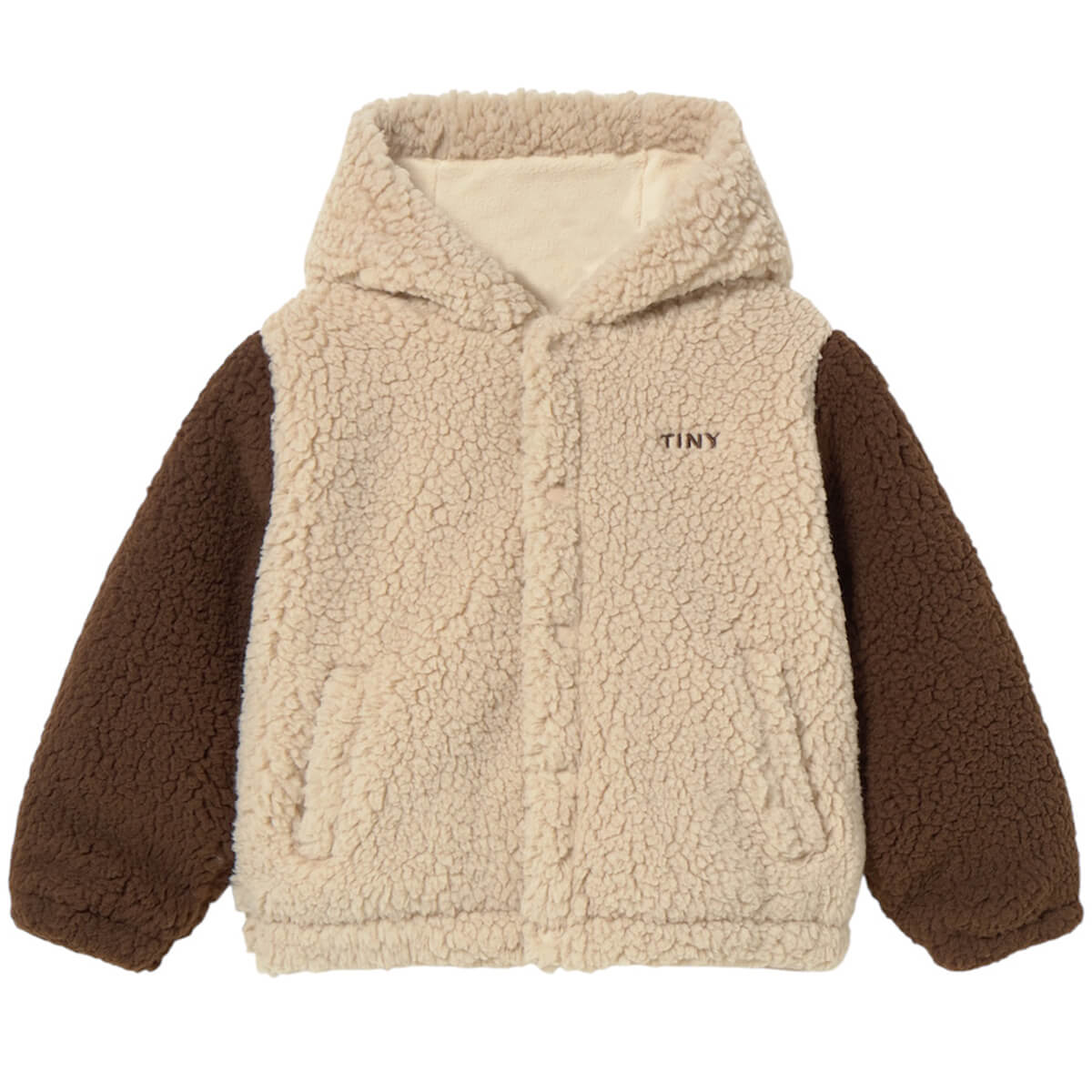 Colour Block Sherpa Hoodie in Dark Vanilla by Tinycottons