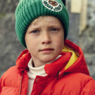 E.T. Patch Knitted Rib Beanie in Green by Mini Rodini