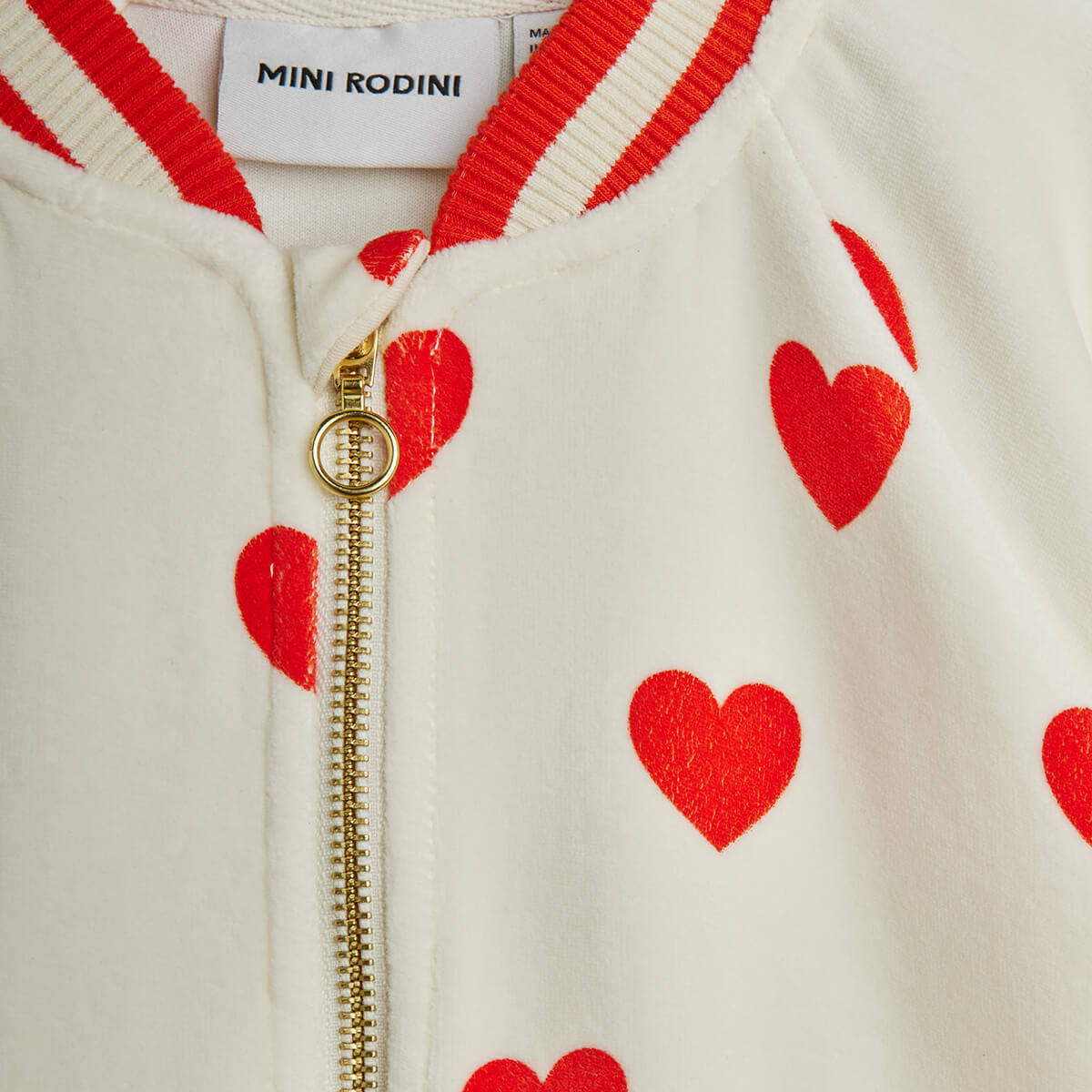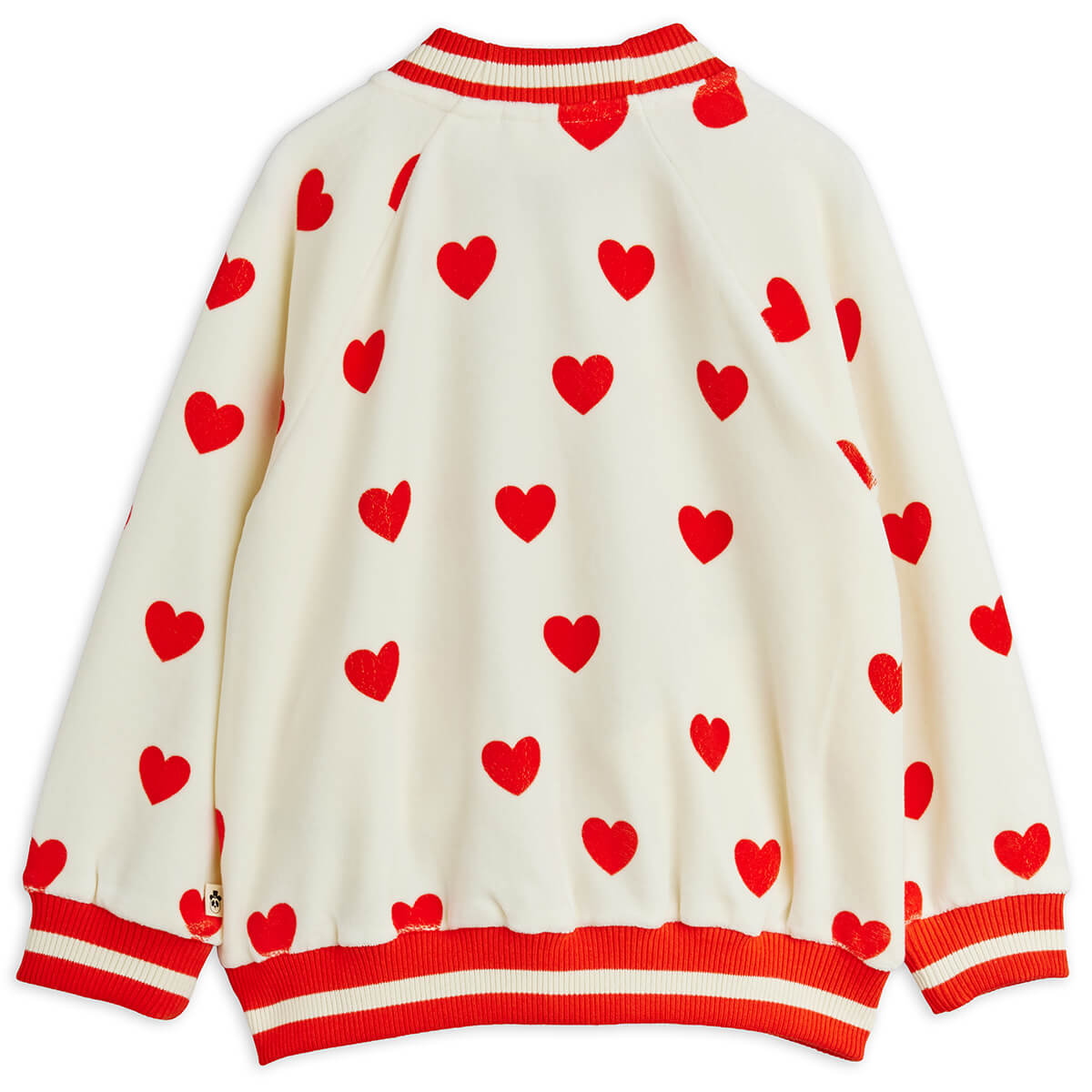 Hearts AOP Velour Baseball Cardigan by Mini Rodini. Soft velour cardigan in a relaxed fit