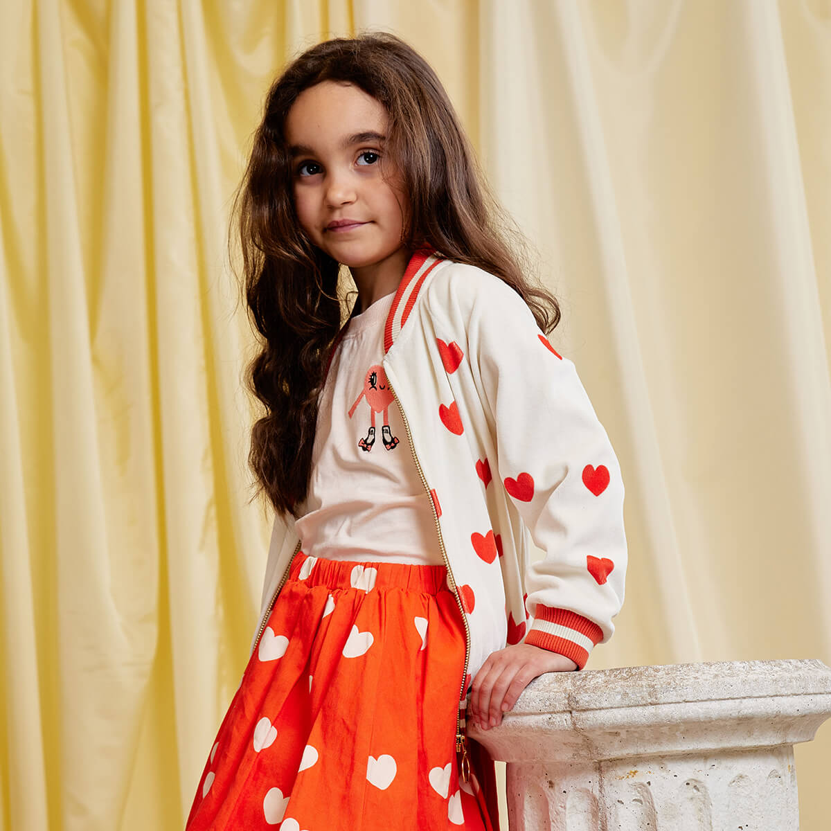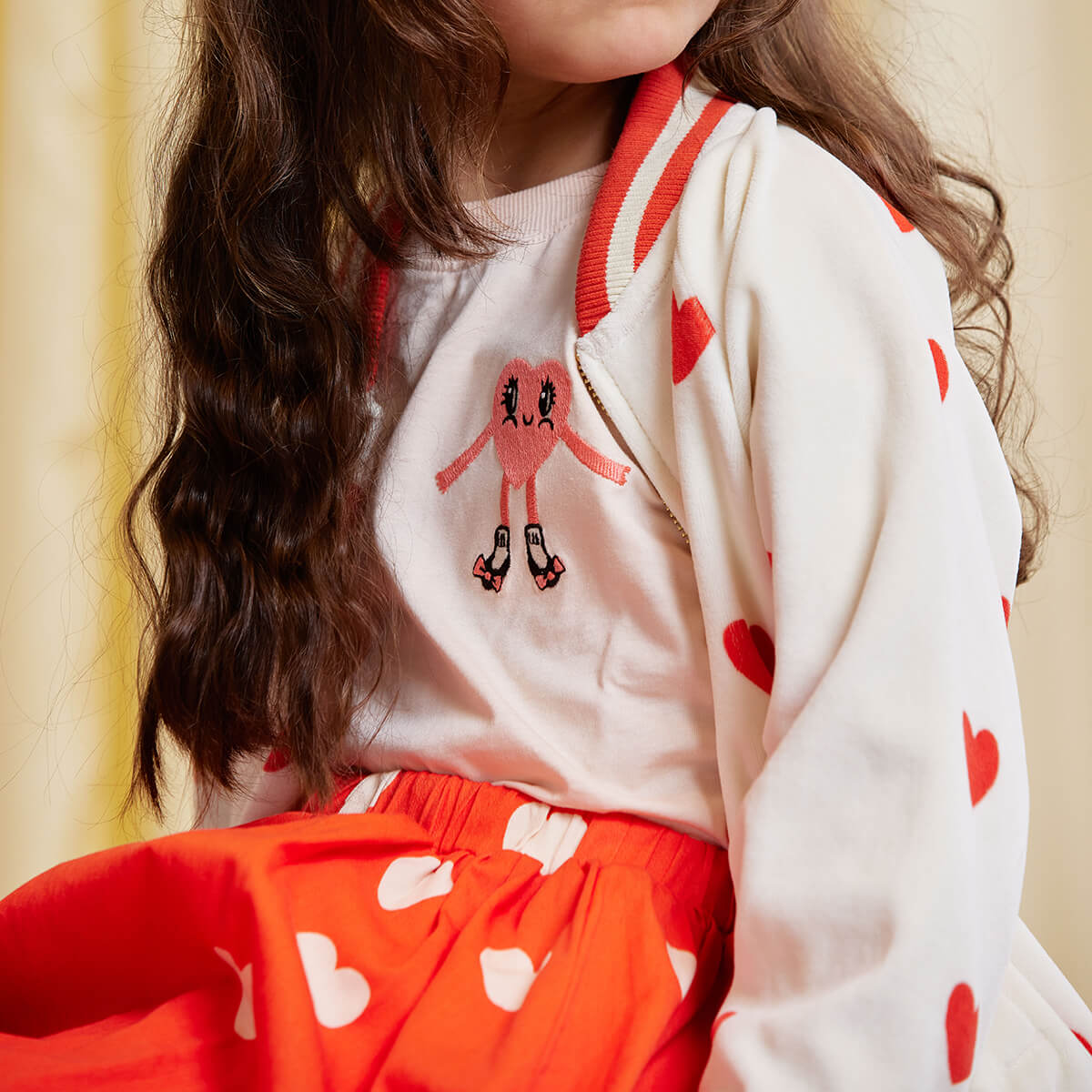 Hearts AOP Velour Baseball Cardigan by Mini Rodini