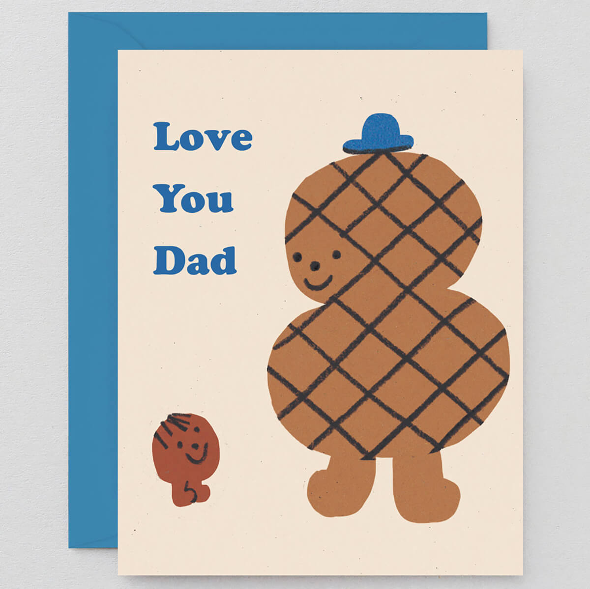 Love You Dad greetings card by Maria Ramos for Wrap. Features an illustration by Maria Ramos. Blank inside with an adriatic blue envelope.