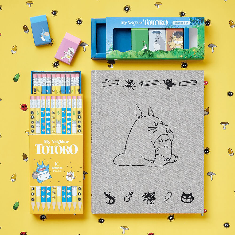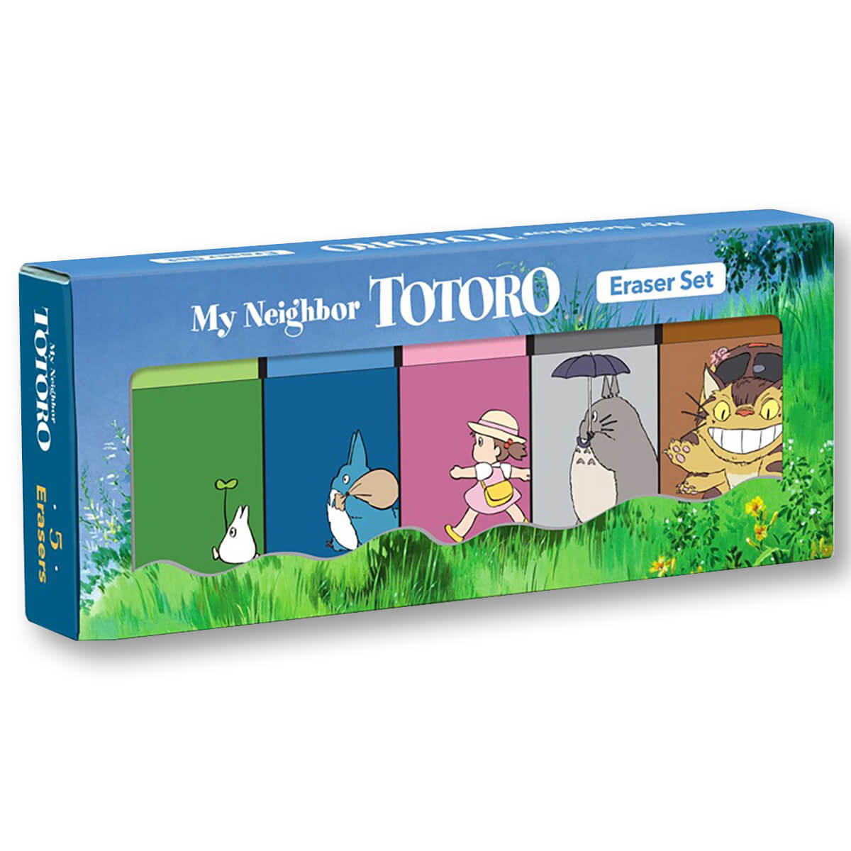 My Neighbor Totoro Erasers by Studio Ghibli. Make mistakes disappear with My Neighbor Totoro erasers! Celebrated for being one of the best hand-drawn films in the history of animation, My Neighbor Totoro is a true inspiration. This set of five erasers feature full-color sleeves with images of Totoro and friends as they walk through the forest—all packaged in a cute box with a die-cut window. These erasers are a delightful way to fix mistakes, and an essential desk accessory for Totoro fans of all ages.