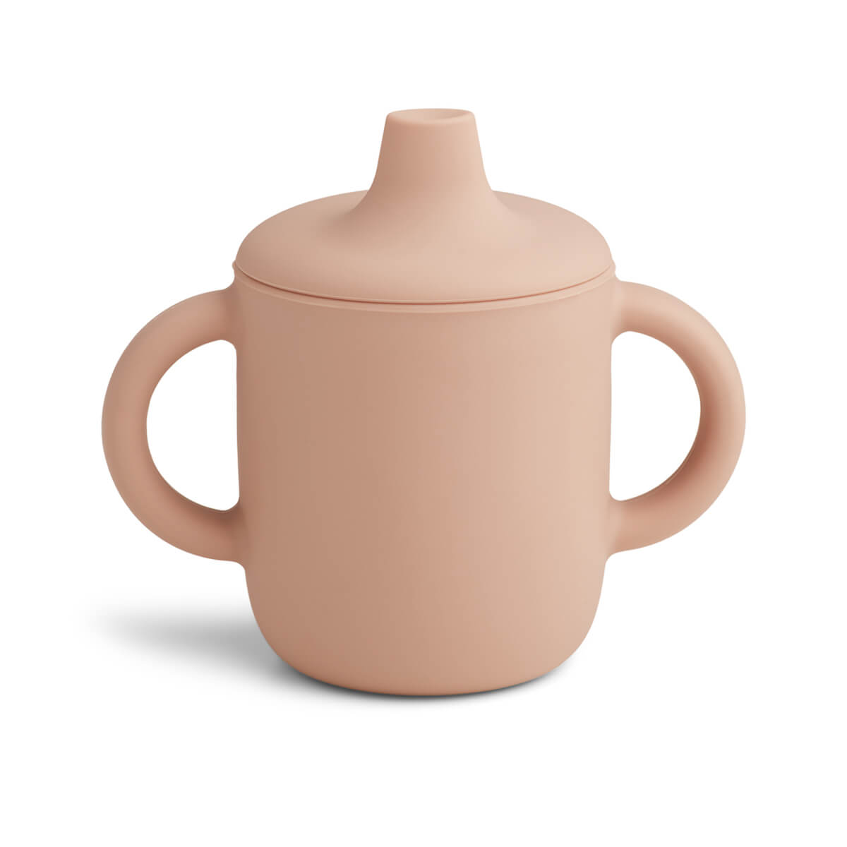 Neil training cup by Liewood. Perfect design for mastering the skills to drink. The “no-spill” cup has a removable lid with a small spout and smooth handles. The handles ensure a tight grip and allow the child to practice holding and tilting and prepare for using an open cup.