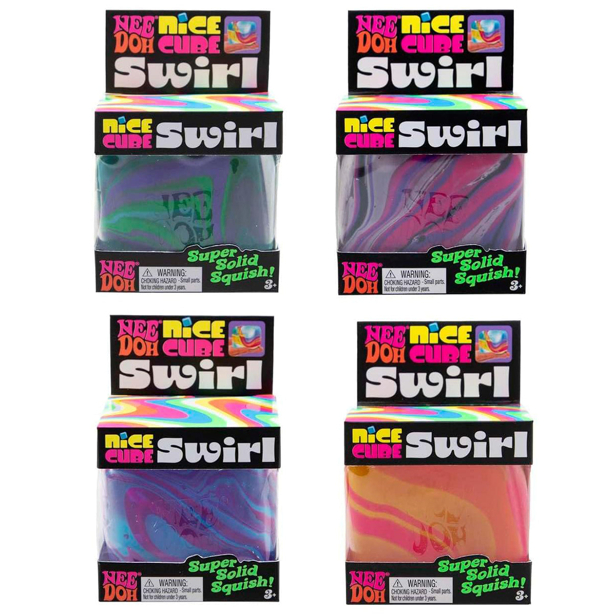 Nice cube swirl Needoh squishy toy by Schylling. Twist and turn your way to sensory satisfaction with the NeeDoh Nice Cube Swirl! Each cube features a one-of-a-kind, swirling colour blend that’s as unique as your vibe. With every squeeze, it returns to its square shape.
