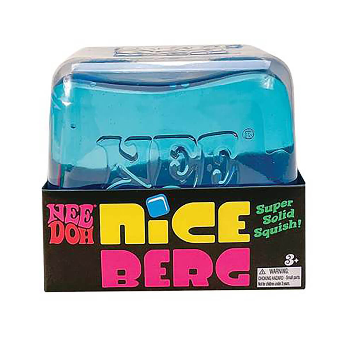 Niceberg Needoh squishy toy by Schylling. Just like the bestselling NeeDoh Nice Cube, but supersized, the NeeDoh Niceberg oozes chill vibes and features a frosty ice cube effect. The bigger size brings even more sensory satisfaction with every squeeze and has a gel-like filling for a solid squish. Perfect for when you need to cool off and relax, this larger-than-life version of the popular Nice Cube NeeDoh will melt away any stresses and help kids to unwind, kick back, and chill out in style.