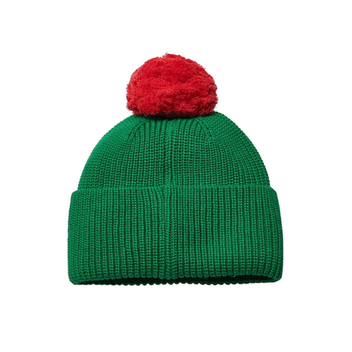 Pom Pom Beanie by Wynken. Full of character, this bold knitted beanie is made from 100% cotton and topped with a playful pompom. A cheeky pair of embroidered eyes peek out from the turned-up edge, adding a wink of fun to chilly-day dressing. Soft, snug, and ready to turn heads.