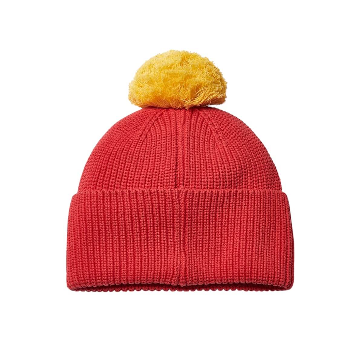 Pom Pom Beanie by Wynken. Full of character, this bold knitted beanie is made from 100% cotton and topped with a playful pompom. A cheeky pair of embroidered eyes peek out from the turned-up edge, adding a wink of fun to chilly-day dressing. Soft, snug, and ready to turn heads.
