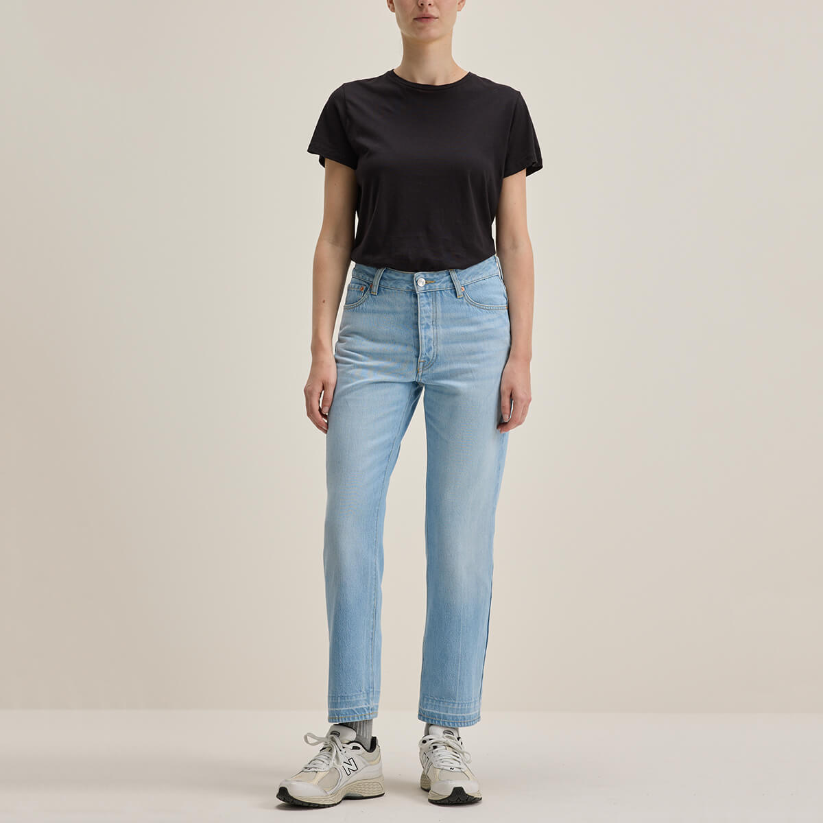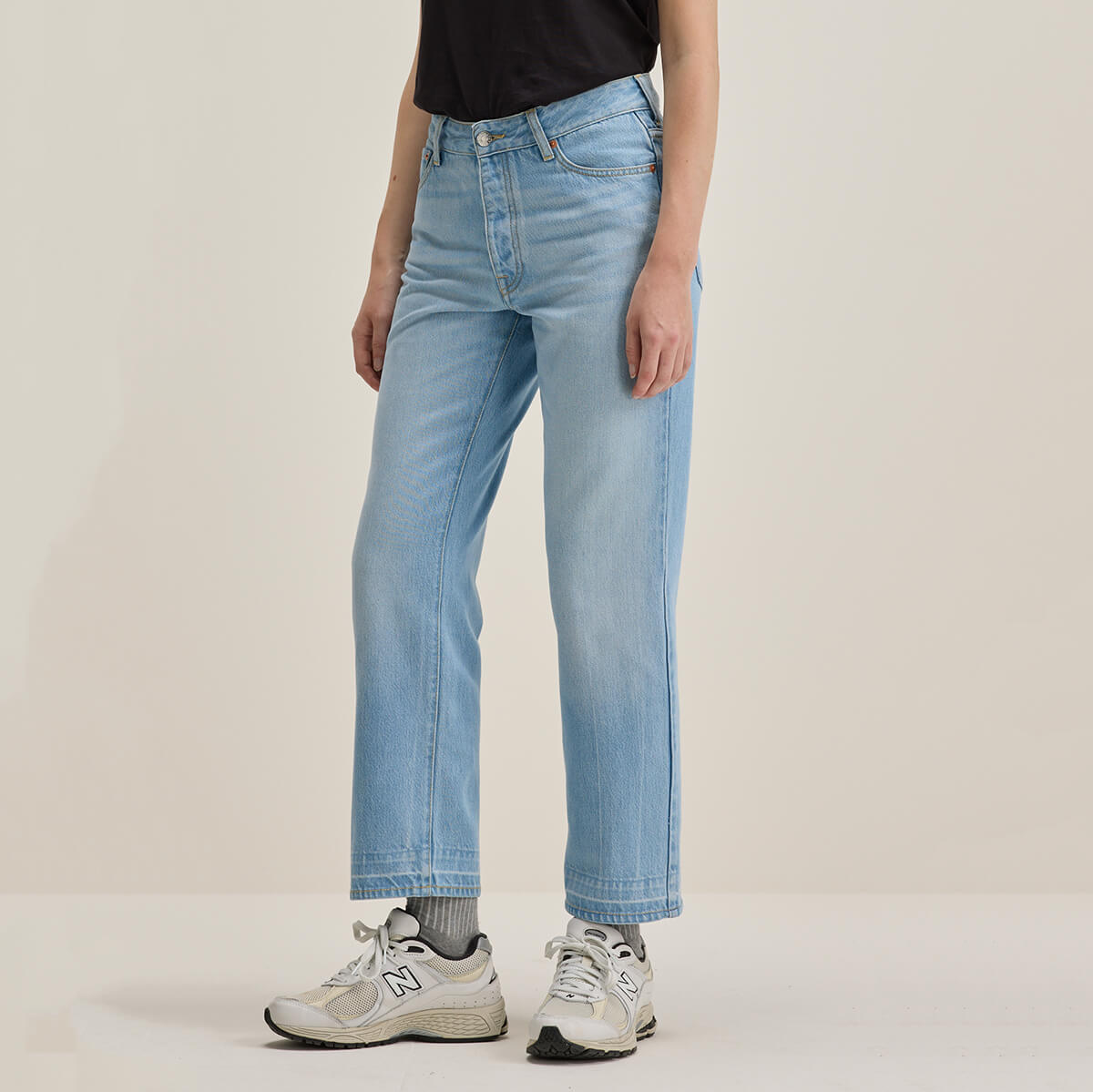Popeye Jeans by Bellerose. Mid-rise straight cut cropped jeans in heavyweight no stretch denim. Zip fly, regular fit.
