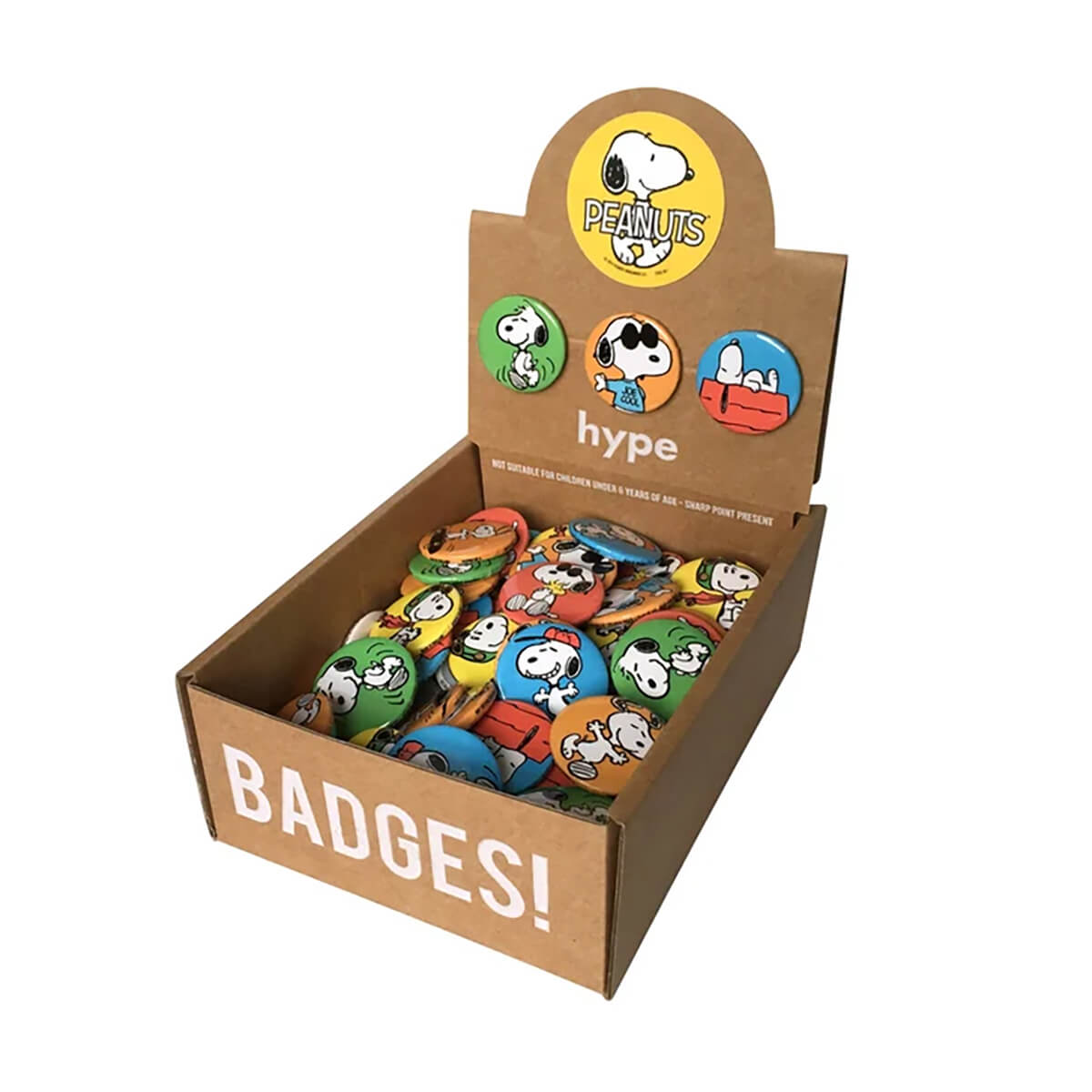 Snoopy assorted button badges by Hype Card. Features an illustration by Charles Schulz.